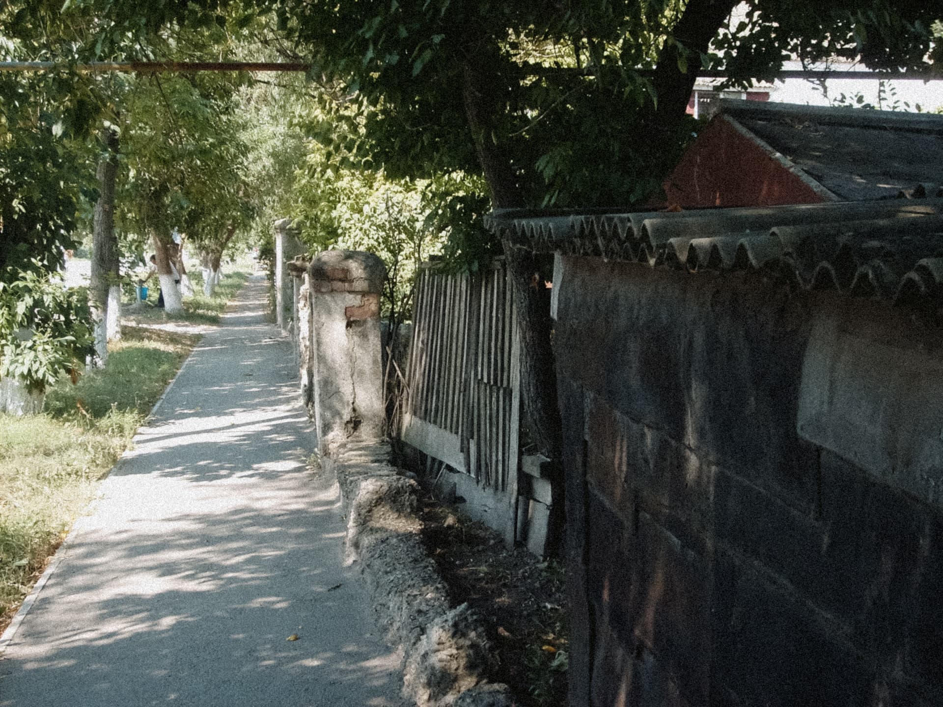 Тротуар, проложенный вдоль старых оград и сарайчиков.