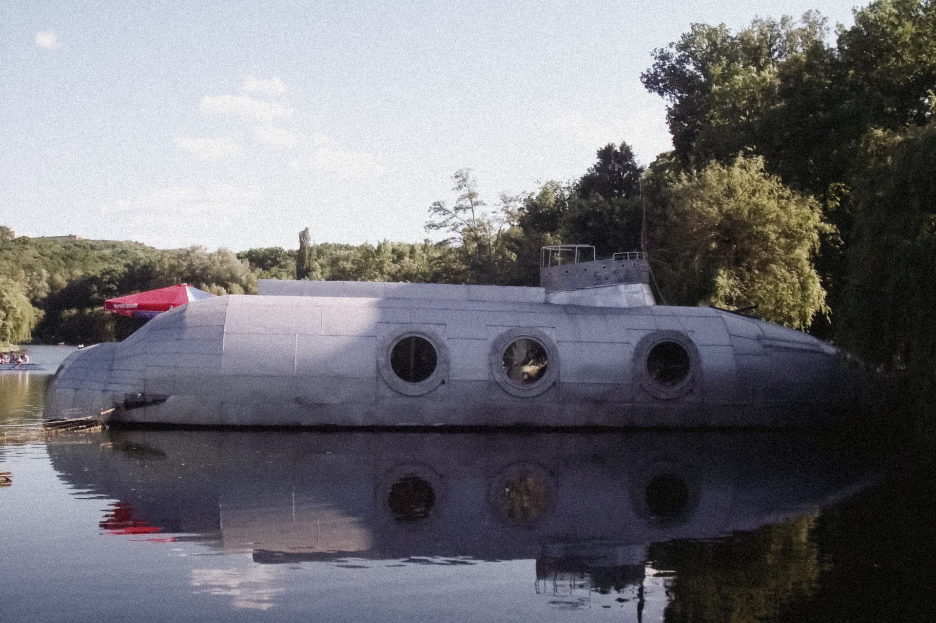 Из этой прогулки пусть будет фотка какой-то ерундовины в виде подводной лодки в... Кажется, это были Ореховатские пруды в Голосеевском парке.