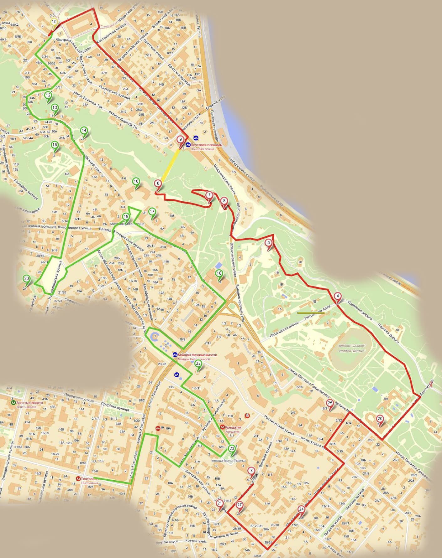 Но сперва мы поехали в Киево-Печерскую лавру, её на плане выше нет, она отстоит чуть в стороне.