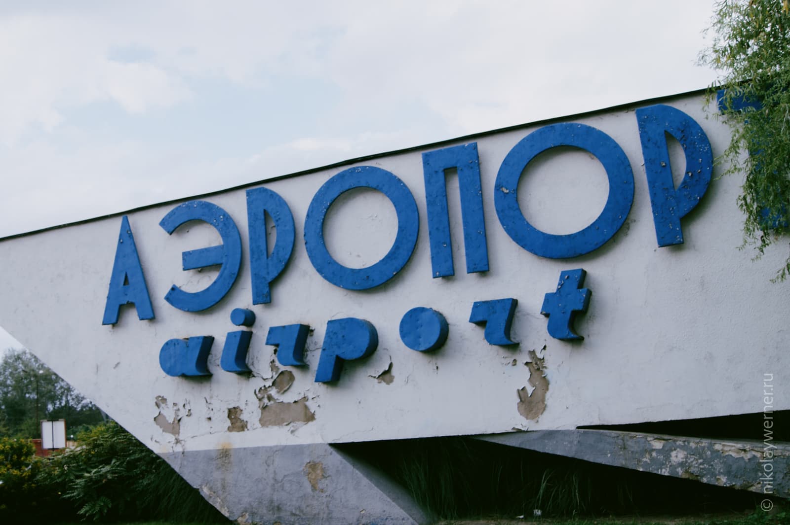 Старая и прекрасная стелла на въезде в аэропорт с одной стороны также закрыта рекламой, но с другой, из кустов, всё ещё позволяла собой полюбоваться.