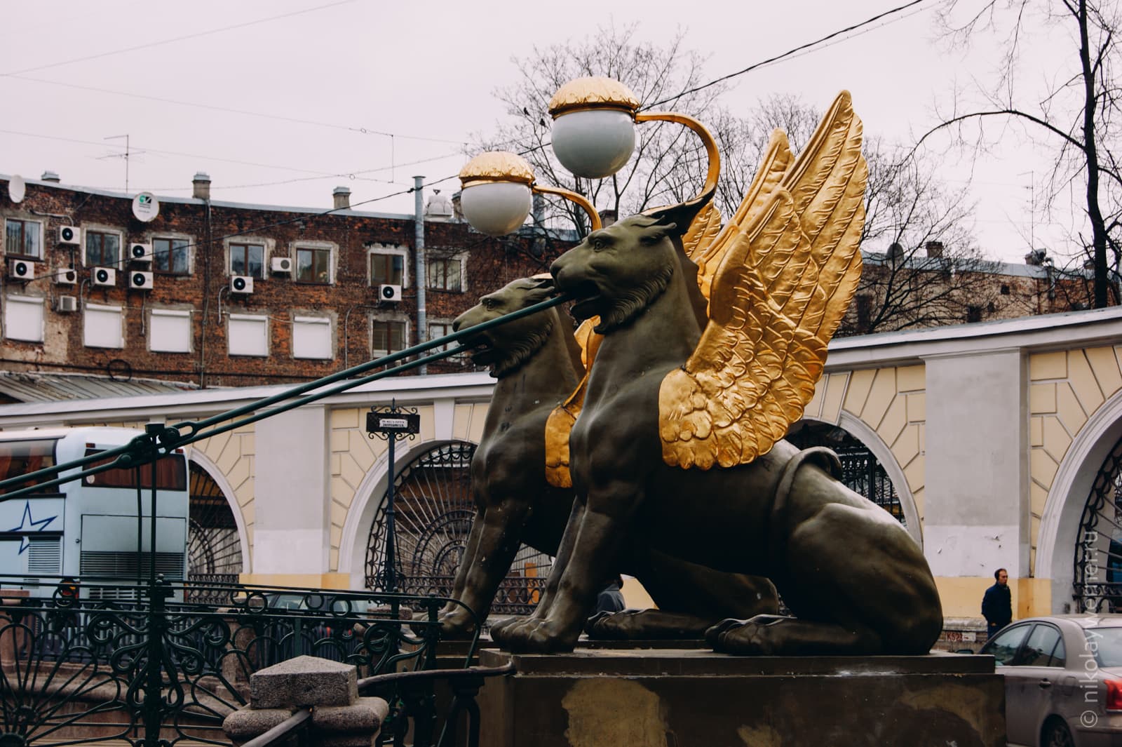 Сфинкс на Университетской набережной и купол Исаакиевского собора вдали.