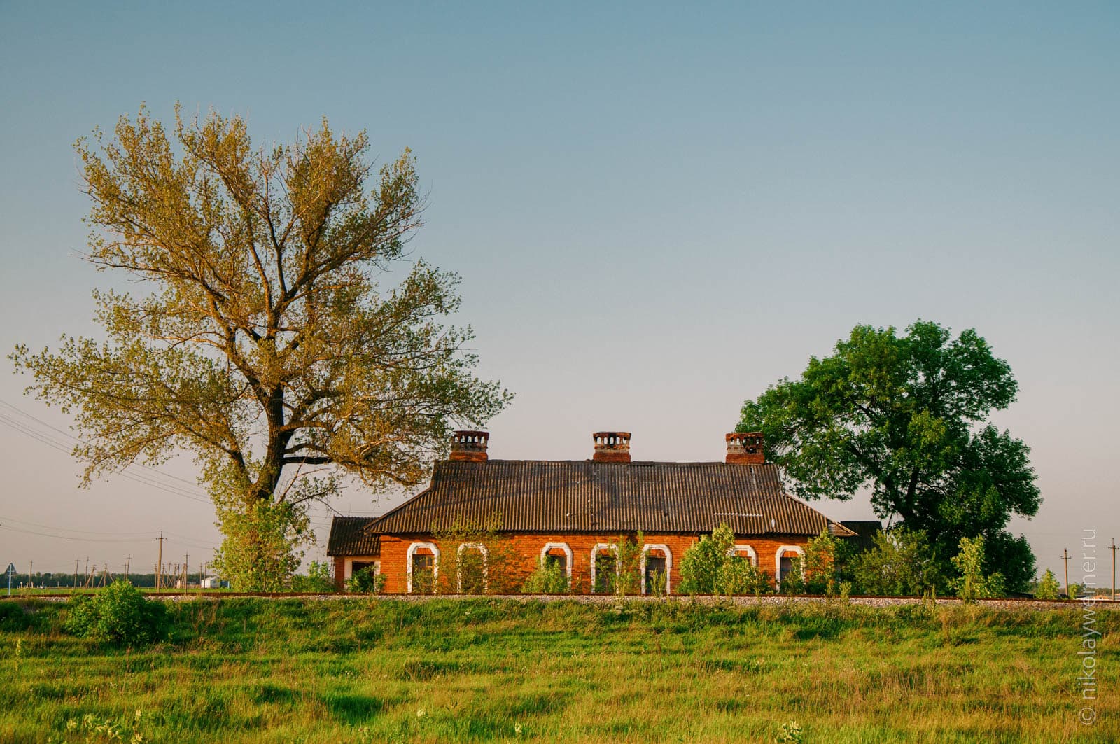 А это уже на обратном пути. Сфотографировал здание железнодорожной станции у станицы Новоджерелиевской. Ветка Тимашевск — Ахтари давно заброшена и станция стоит безхозной.