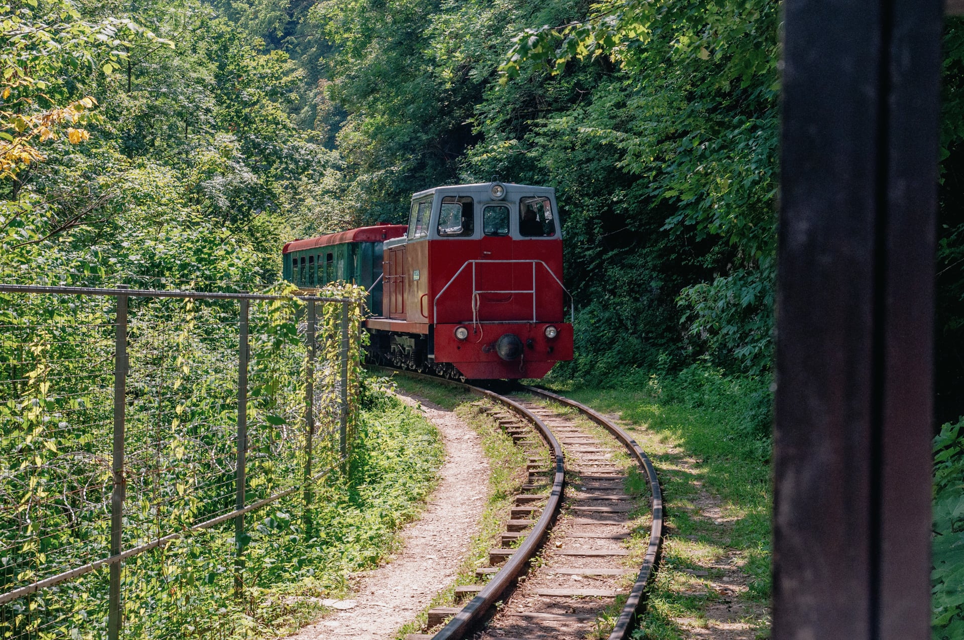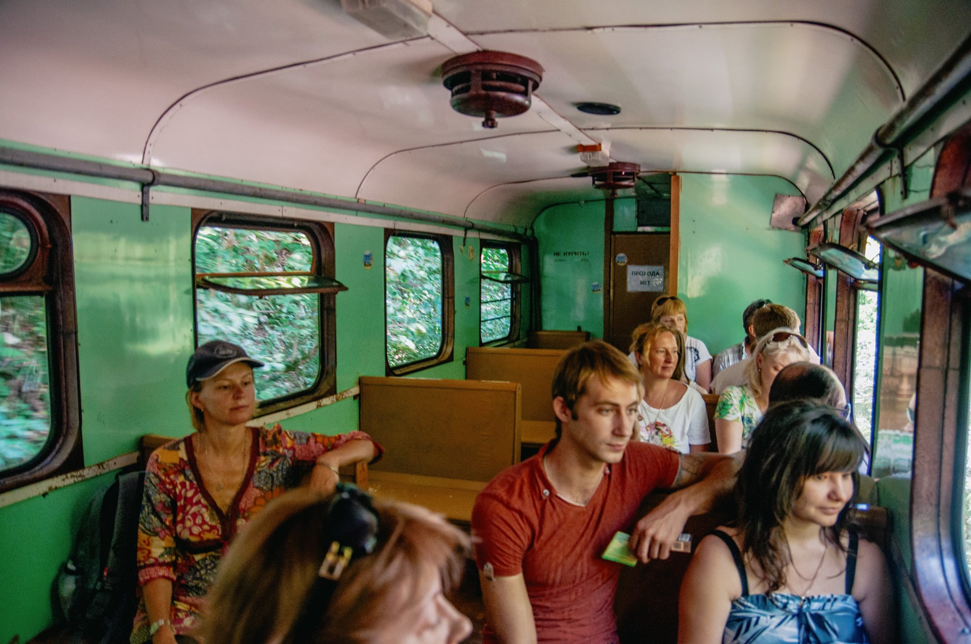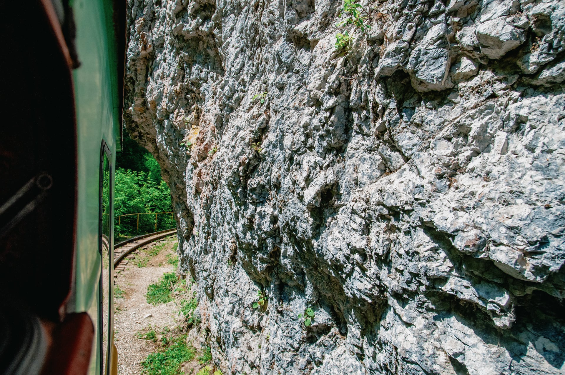 Вагон ползёт, скрипит колёсами. Внутри душно, пассажиры прилипли к окнам, я тоже пытаюсь что-то разглядеть. Проводница была права — справа за окнами плывёт каменная стена, а ущелье слева. Оно классное, но любоваться им сквозь мутное стекло вагона всё равно что смотреть на звёздное небо в сварочной маске.
