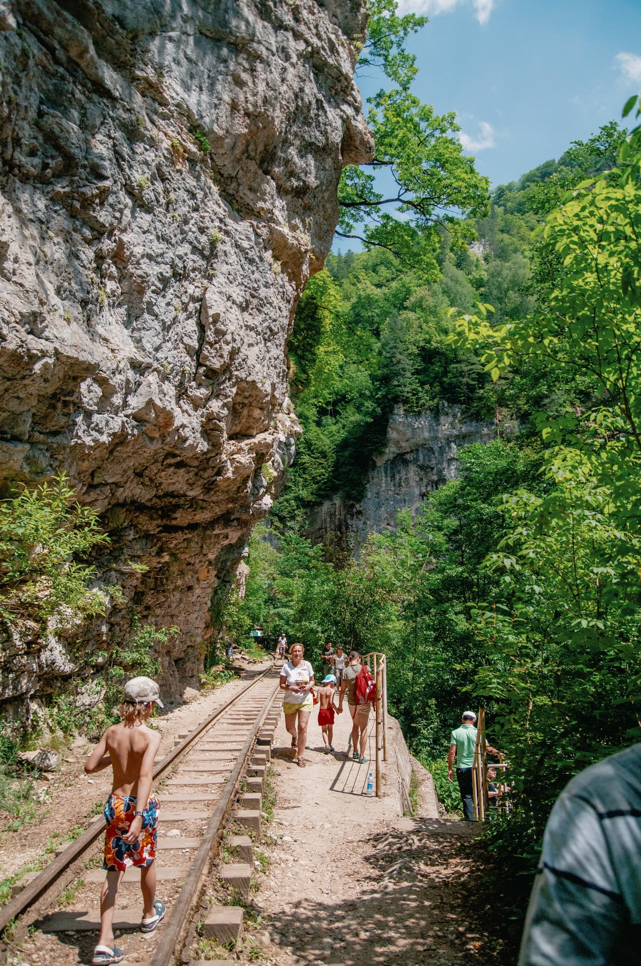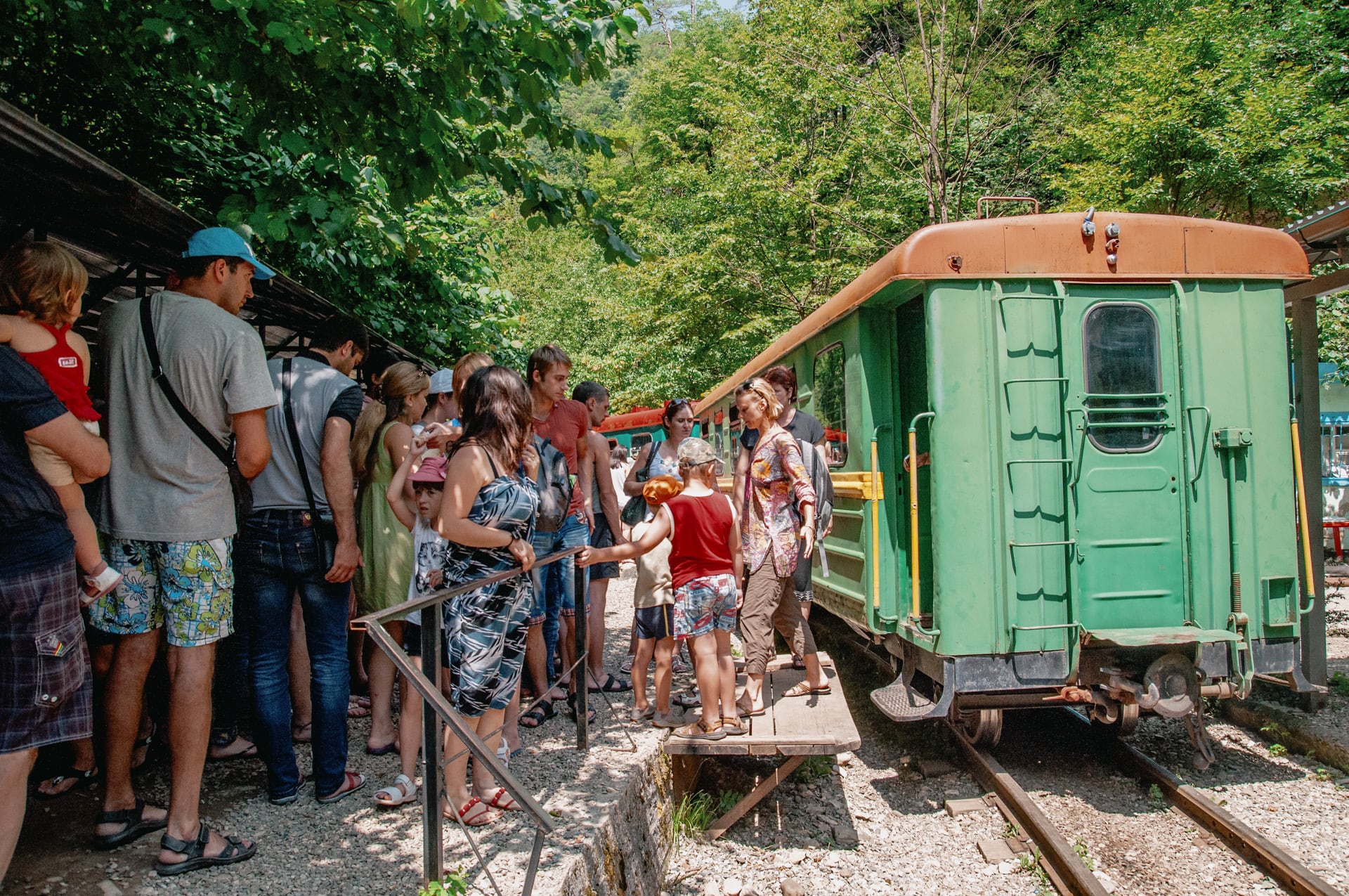 Из конца в конец поезд идёт около десяти минут. Народ вывалил из вагончика и разбрёлся по округе. Одни остались тут же, другие пошли вглубь ущелья. Под ногами бурлит Курджипс, от него нас отделяли несколько метров обрыва. Нашли местечко, где можно безопасно спуститься пониже. Думали устроить чаепитие, но не вышло — всё засрано! В прямом смысле. Говно под ногами, вперемешку с использованными салфетками... Мерзость.