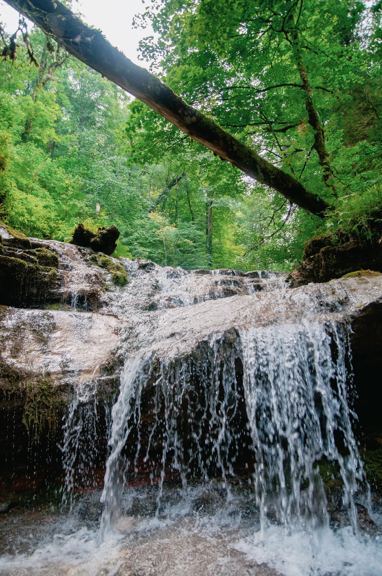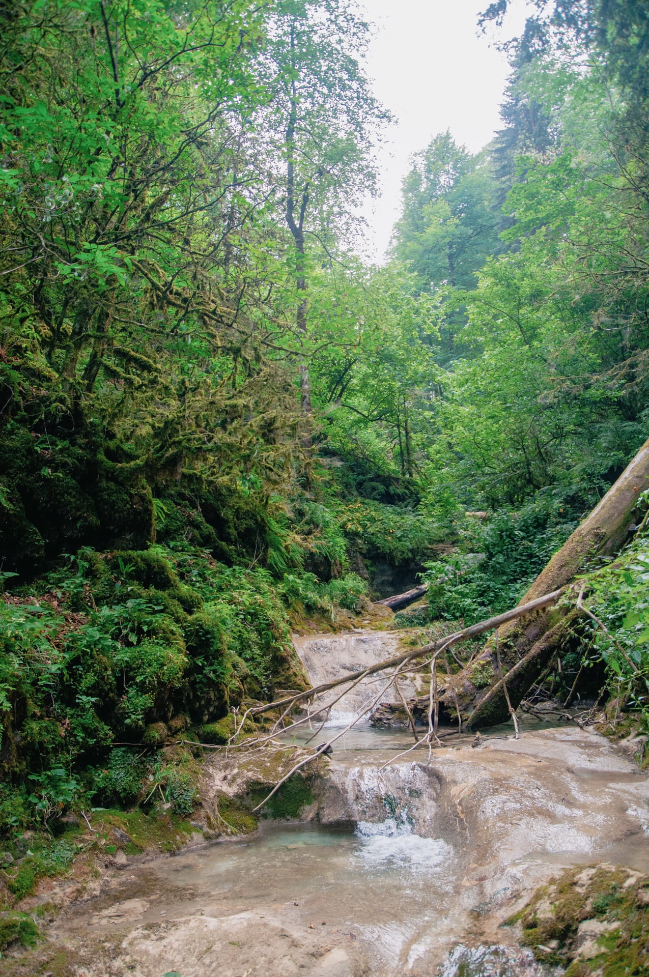 Послушал совета и полез наверх. Подъём казался злым, но я прошёл его на удивление легко. Ребята, один за другим, тоже без трудностей одолели препятствие. Надо же, мы уже вровень с Яворовым водопадом! Сквозь просветы в листве на уровне глаз прорисовываются те скальные массивы, что нависали над головой в Сухой балке. Само дно Сухой теряется в зеленой пелене.
