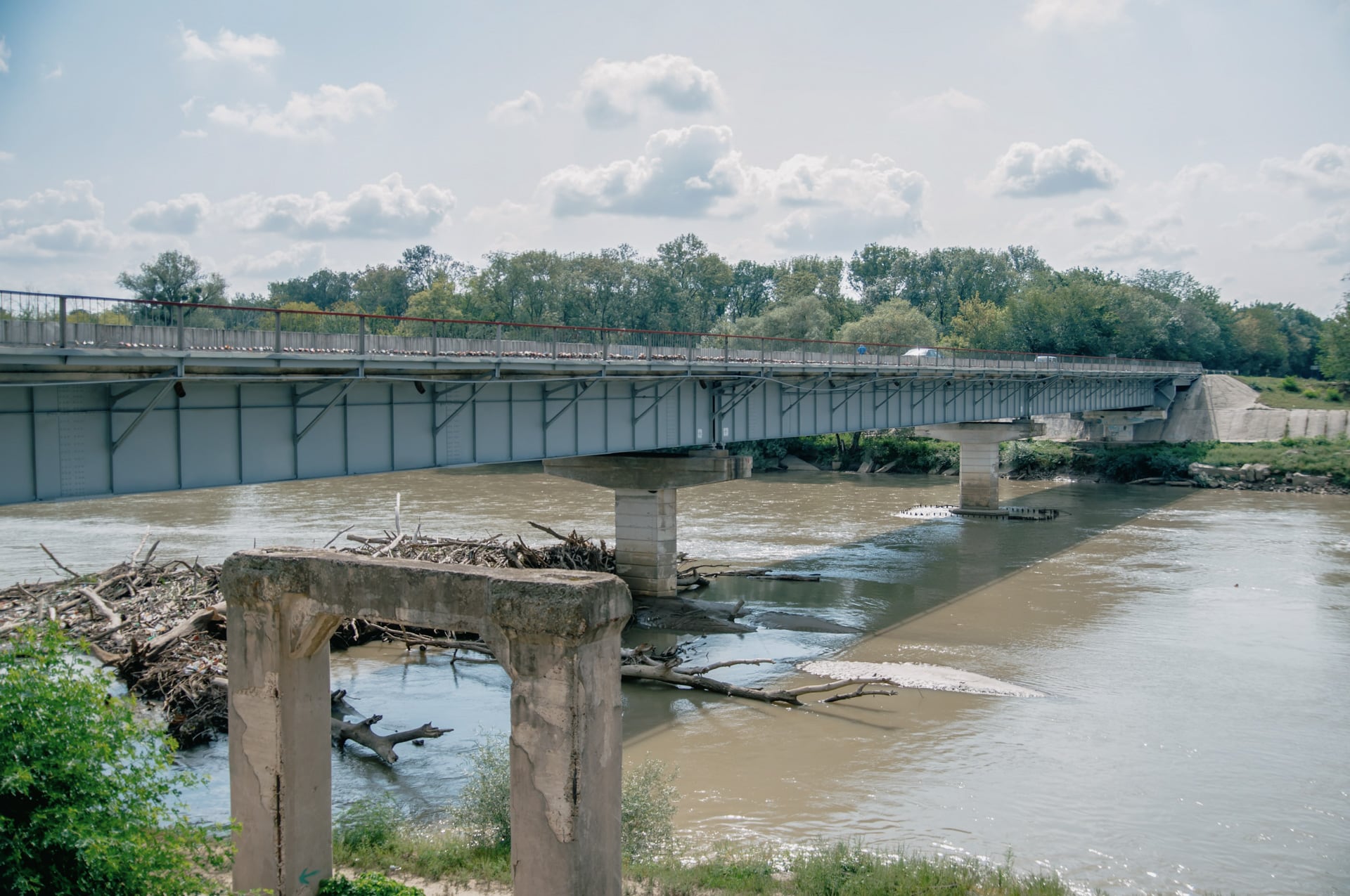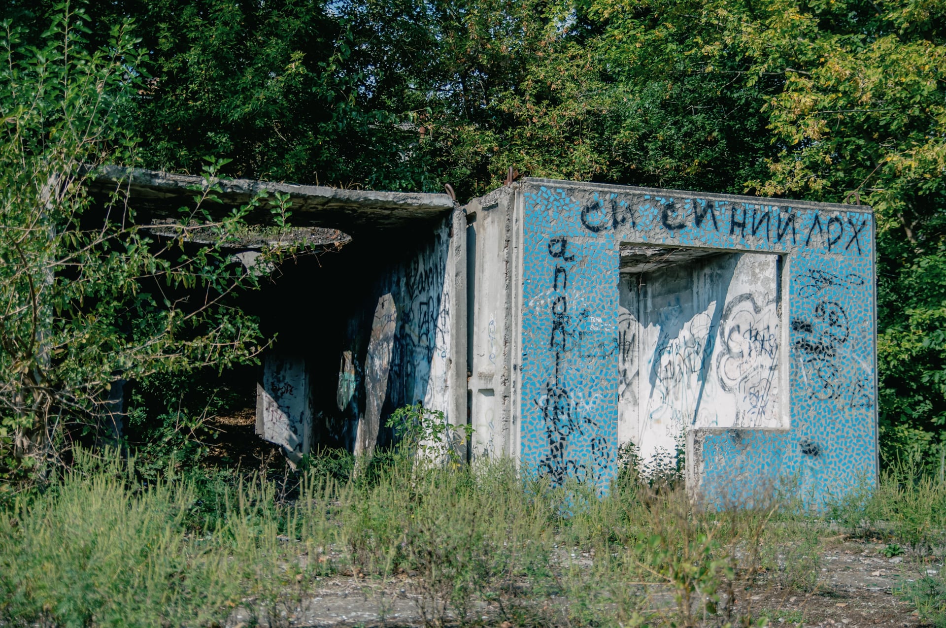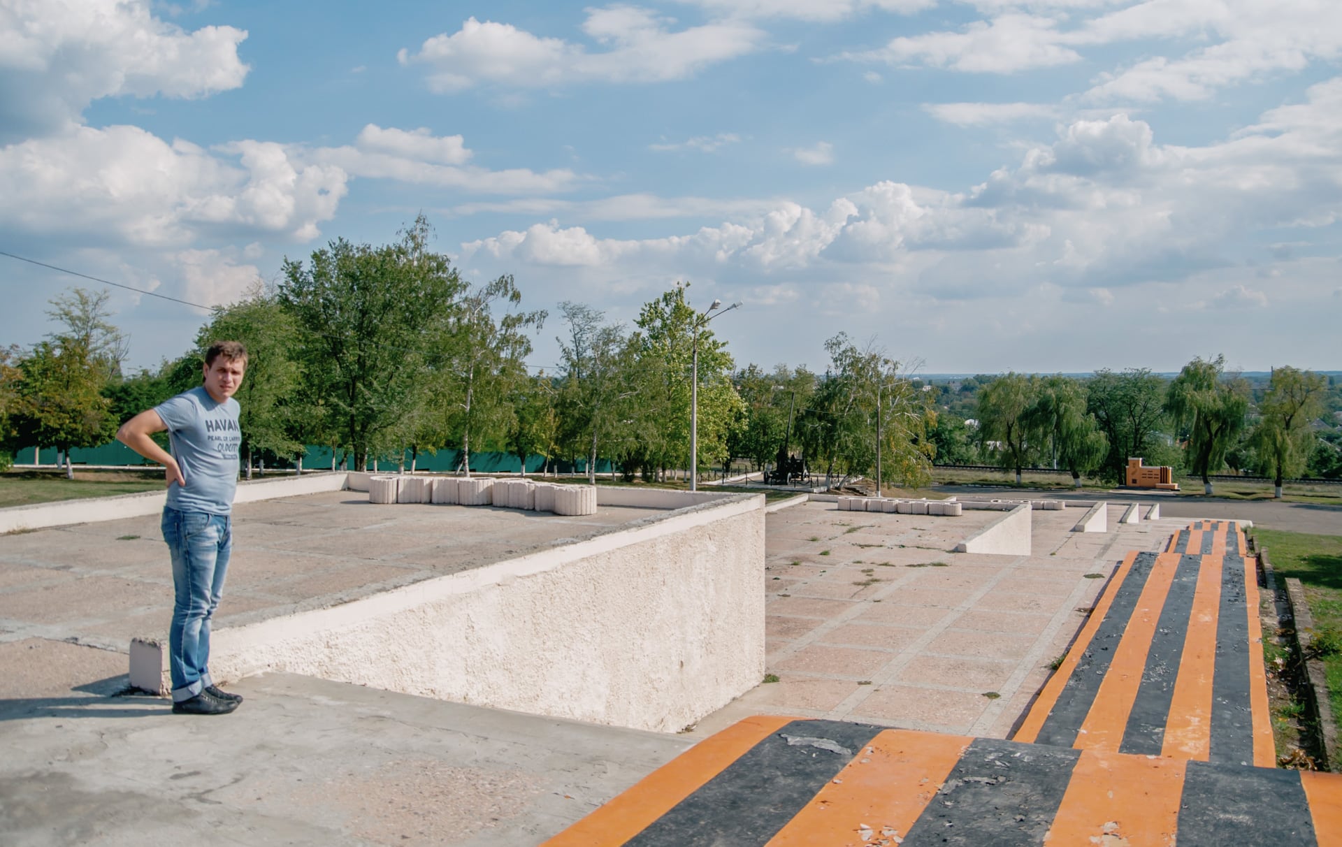 Сразу за переходом ждёт нечто, напоминающее парк, посередине которого стоит кусок бетонной трубы, зачем-то огороженный заборчиком. Оказалось — памятник расстреляным в годы войны.