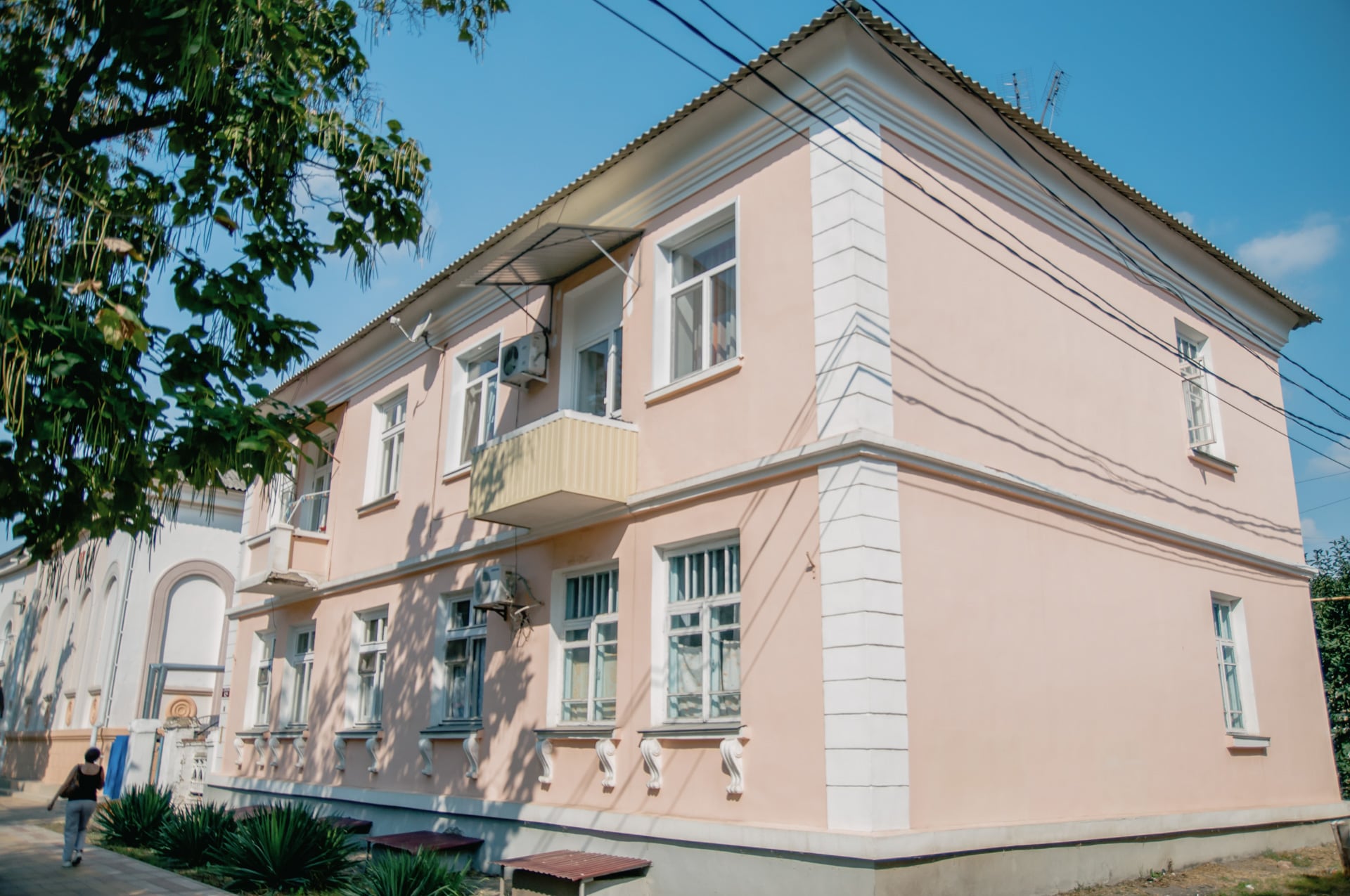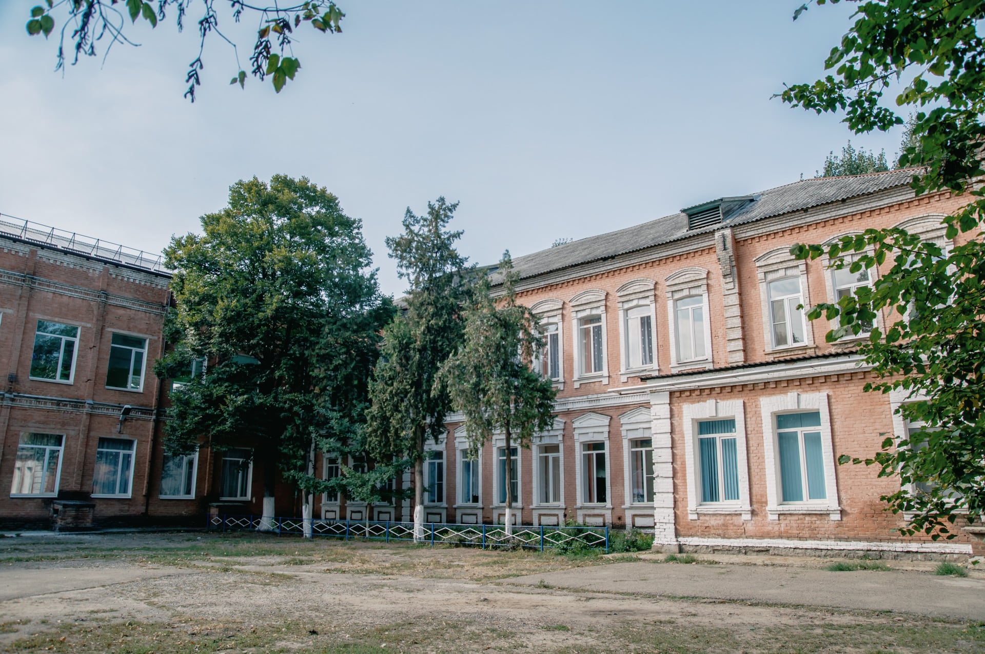 Окружённое старыми корпусом и бывшим учительским общежитием.