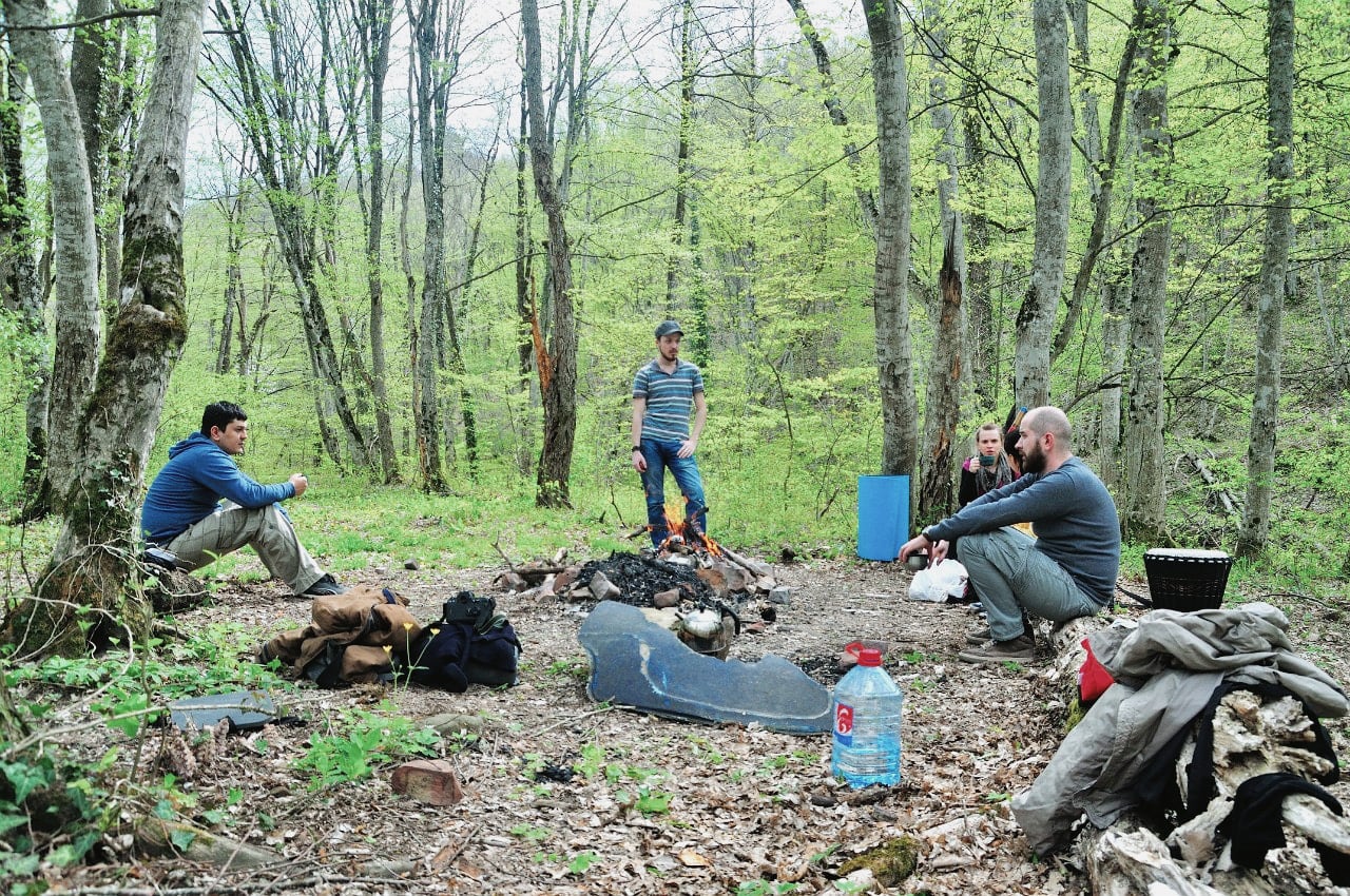 Фото 2. Наш лагерь у костра. Автор стоит в центре.