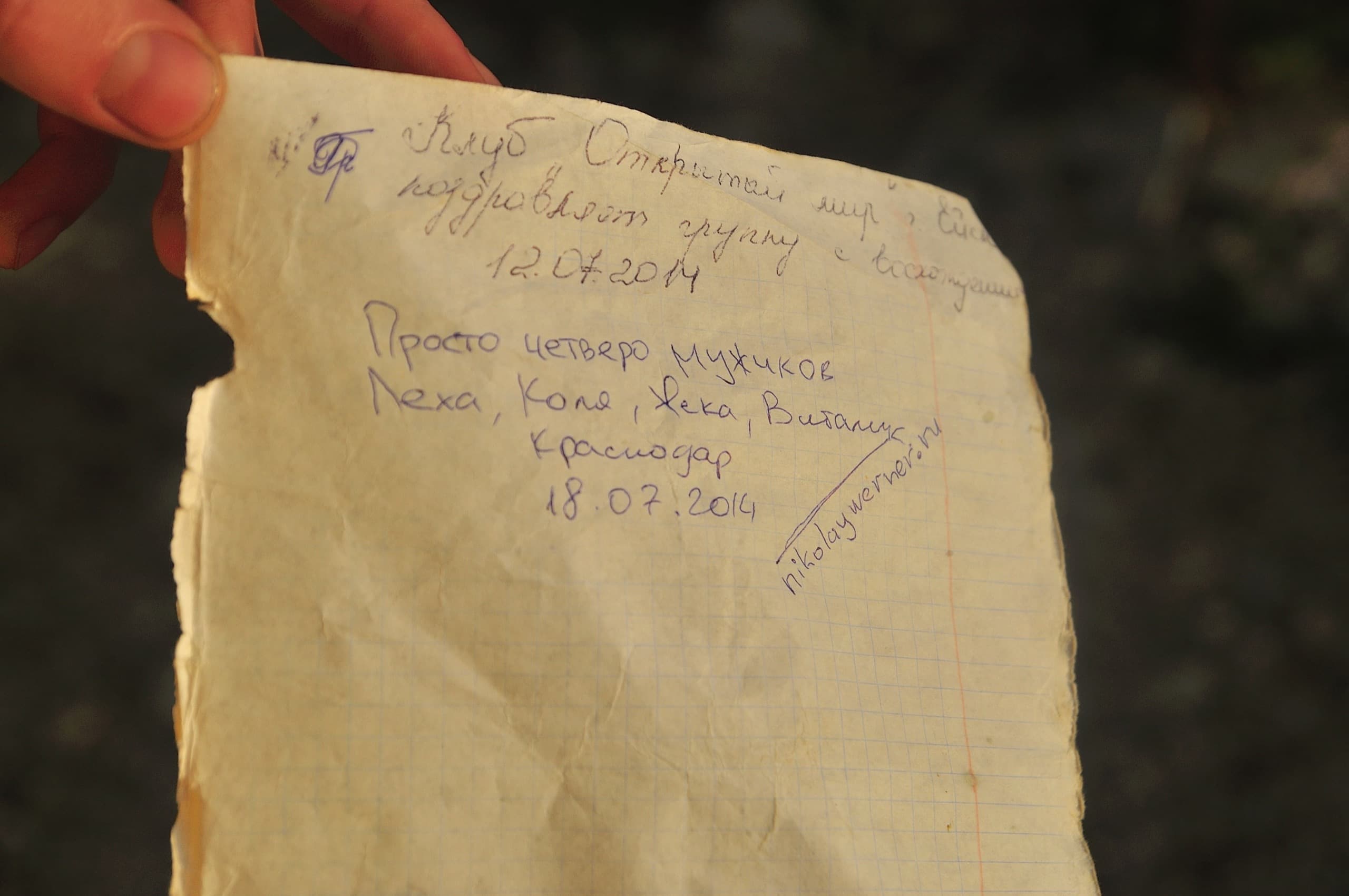 Фото 33. Бумажка, оставленная в банке ейчанами. Отметились.