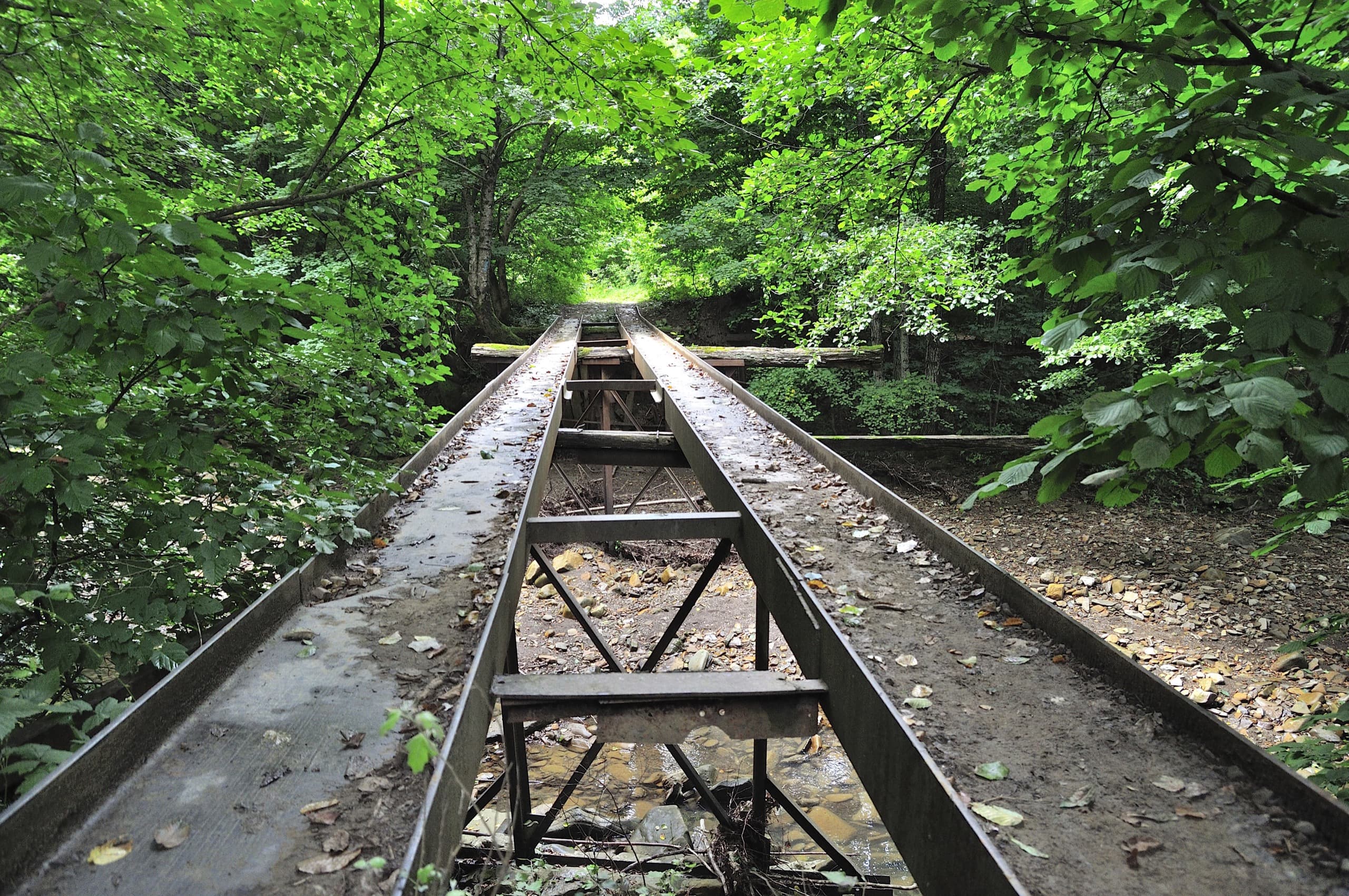 Забыл рассказать про интересную особенность дороги — её прокладывали валившие лес заключенные. Дорога была проторена основательная о чём говорит множество капитальных мостов, которые сейчас пришли в полную негодность, дорога их огибает стороной, переходит речку вброд, а сами мосты стоят без дела, как призраки прошлого.