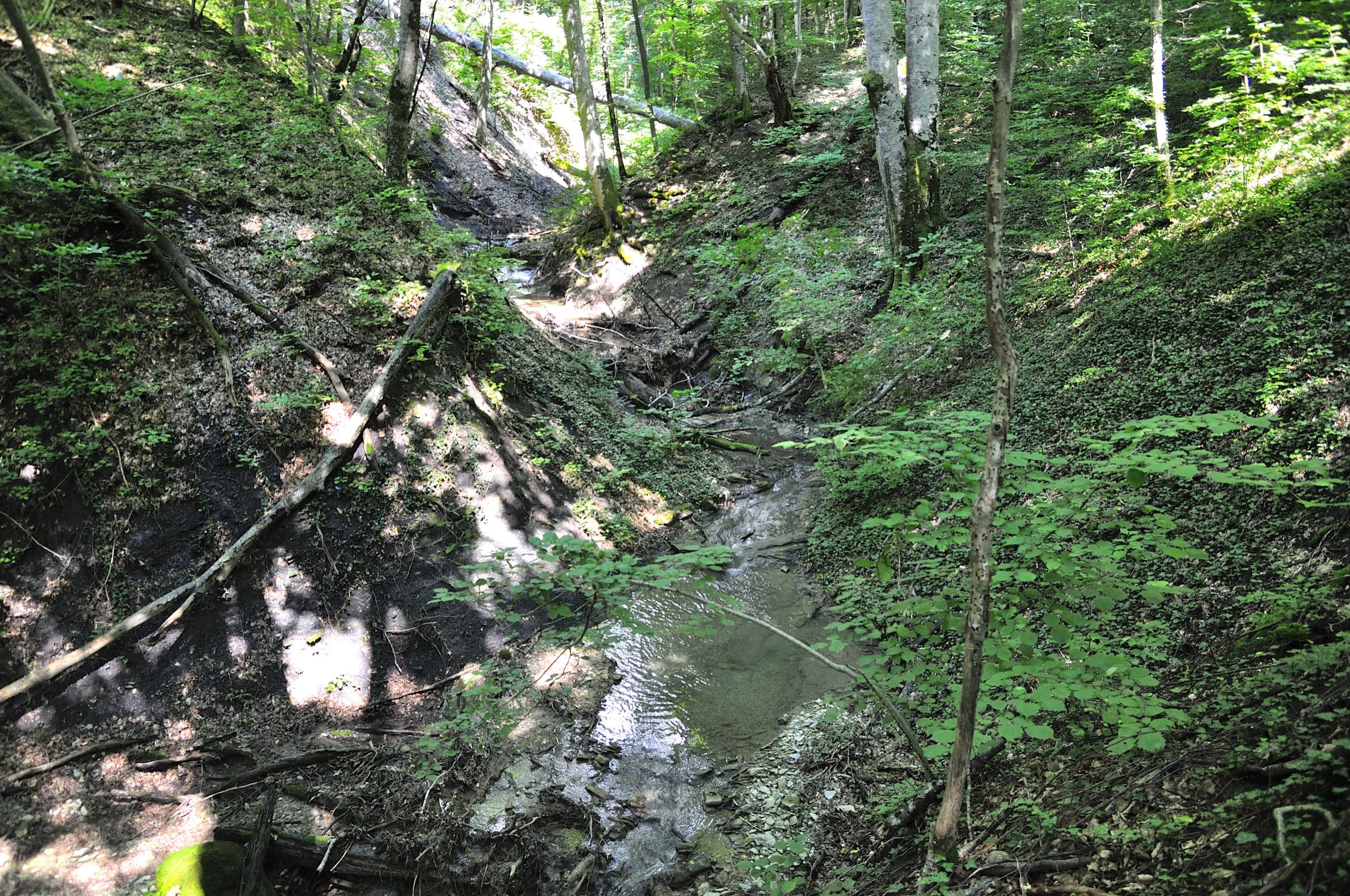 Нам нужно было пройти по лесной дороге, но она делает большой крюк, поэтому я решил проверить тропу, которая на карте проходит аккурат вдоль склона.