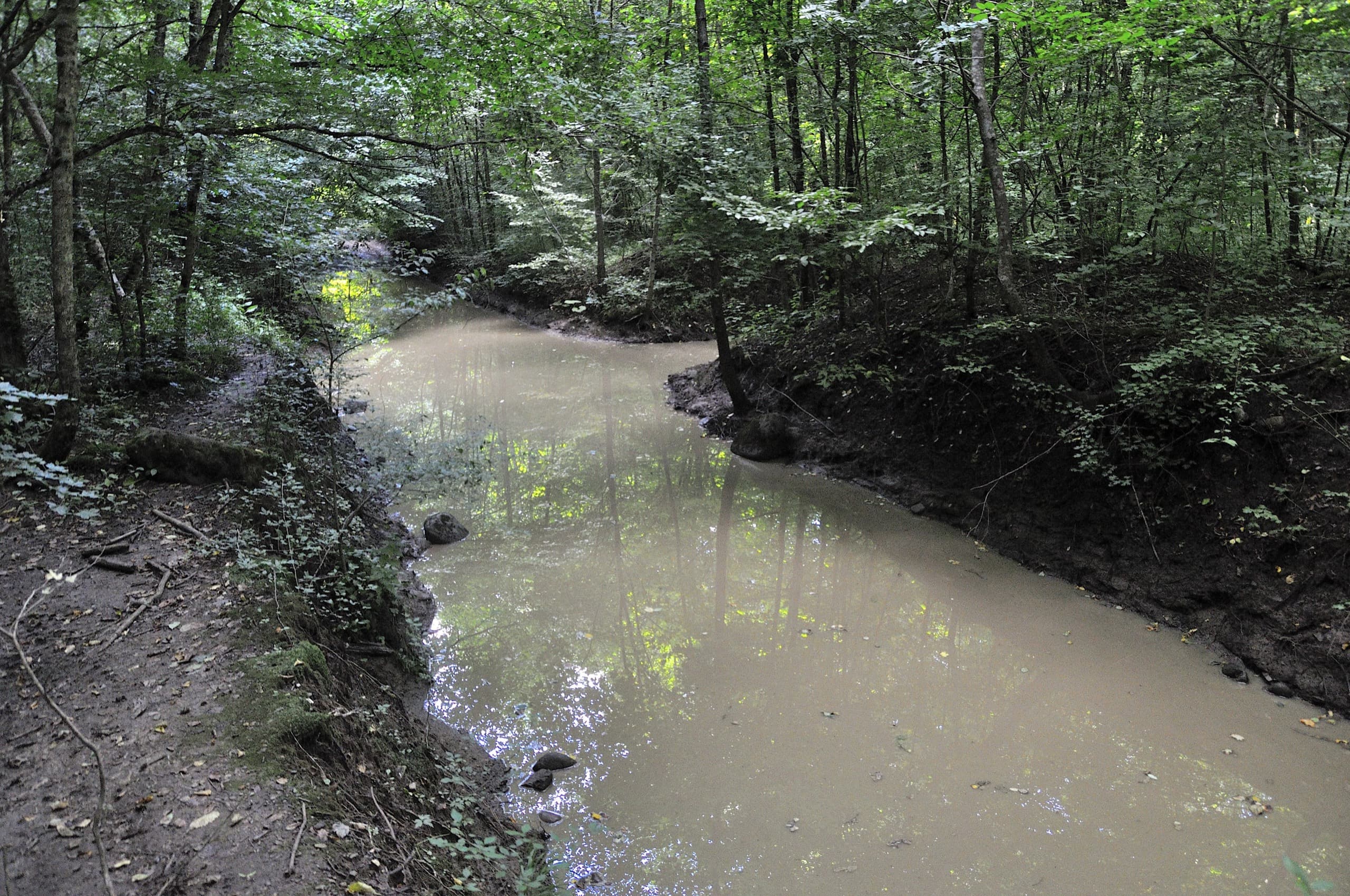 Этот участок ничем не примечателен — обычная походная работа, которую нужно выполнить ради красот. Лес, грязная дорога, лес, грязь, лес, грязь. На спуске дорога более-менее сносная, но стоило нам выйти к реке и началась полная задница. Дорога из Нового настолько разбита, что некоторые участки выглядели как непроходимое болото. Добавим к этому сырость, лесной полумрак и тучи комаров — настоящая походная романтика!