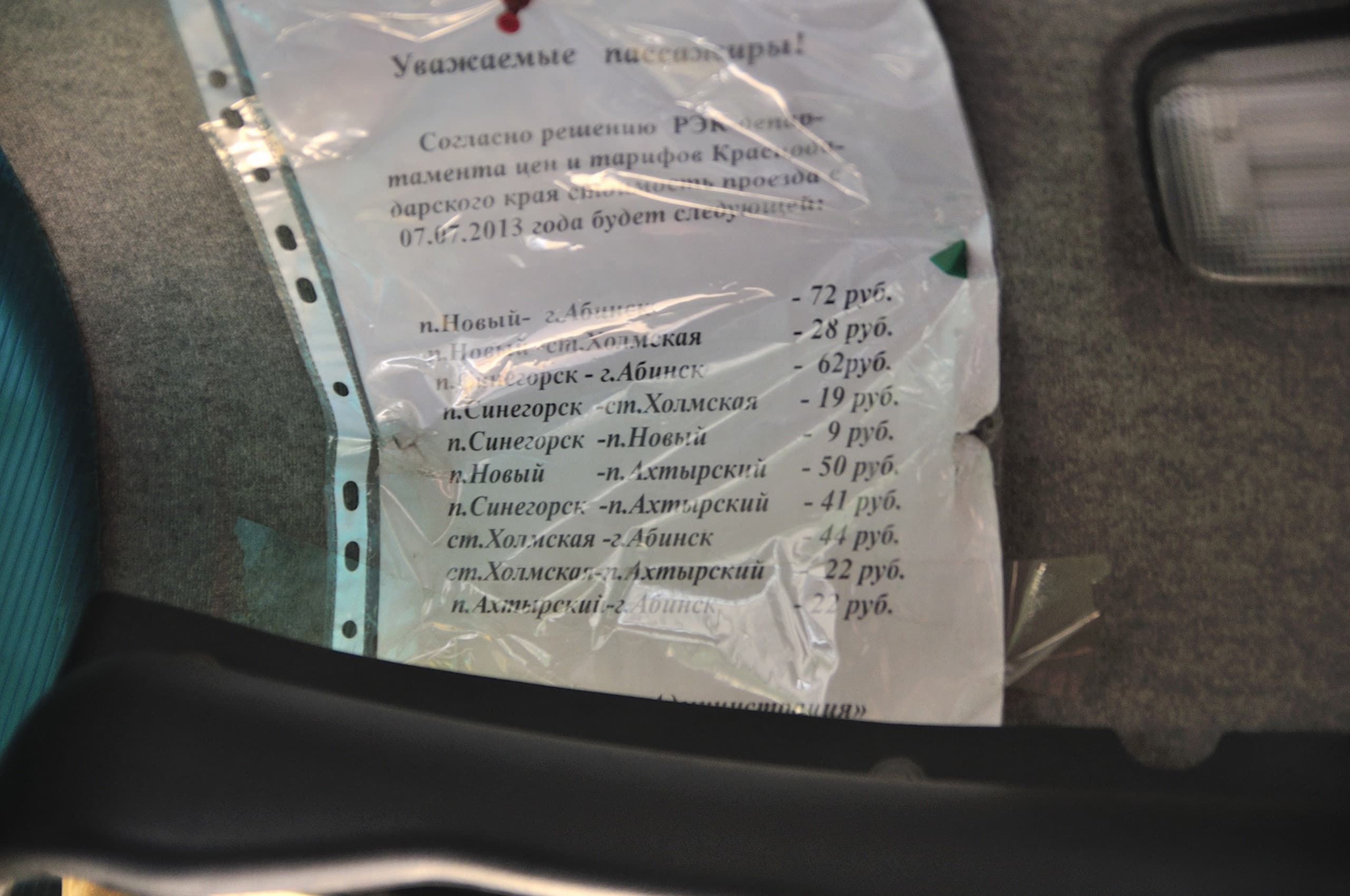 Фото 73. Тарифы на проезд по маршруту Новый — Абинск.