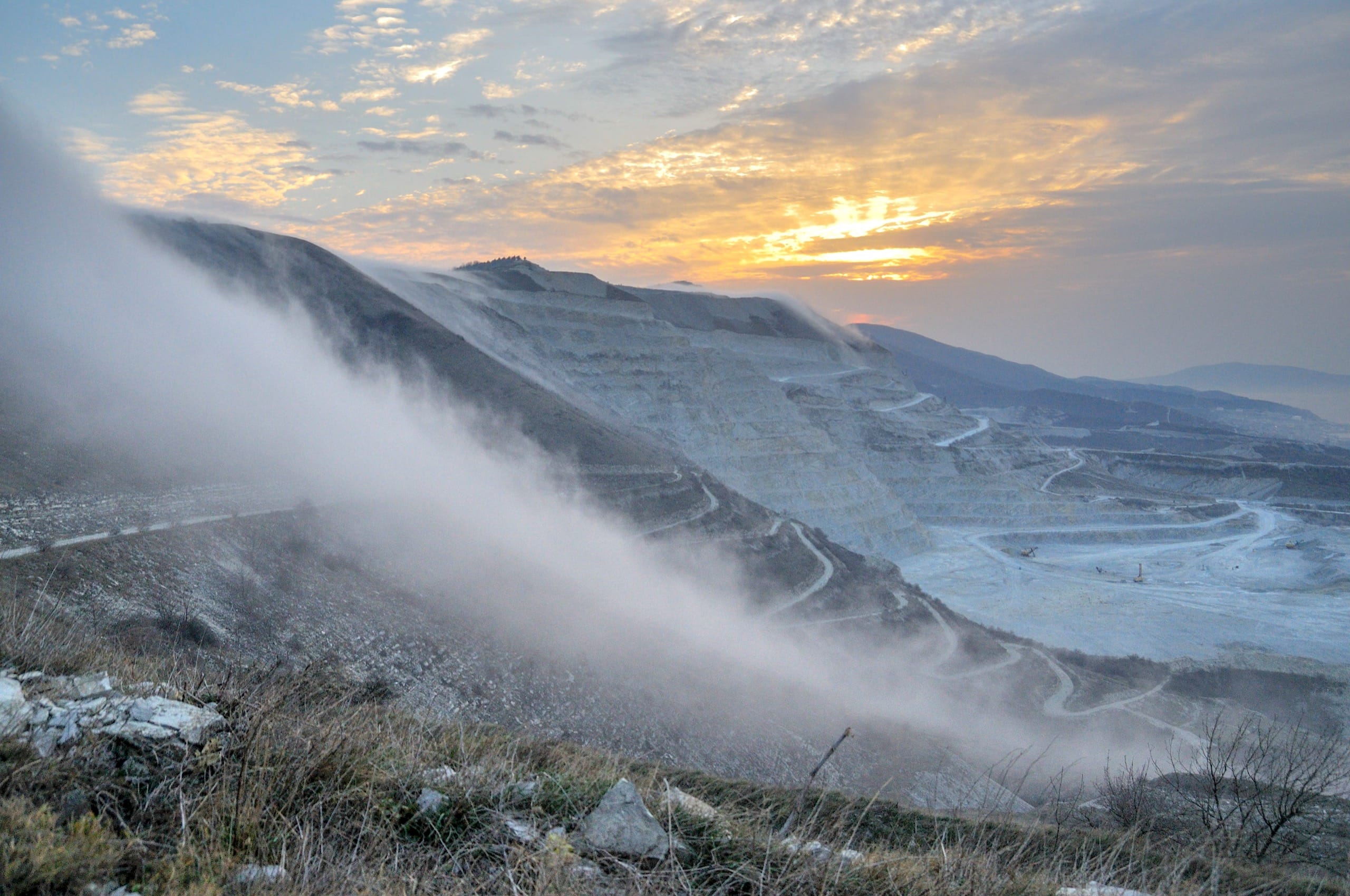 Маркотхский хребет по большей части сложен из мергеля, это такая осадочная порода. Мергель бывает разный, но тот, из которого собрали Маркотхский хребет серый и из него делают цемент. Поэтому половину хребта возле Новороссийска успешно съели люди, не знаю чем ели раньше, но сейчас грызут монструозными экскаваторами. Своими огромными ковшами они грузят в кузова исполинских БелАЗов породу, чтобы те увозили Мергель прочь, поближе к цементным заводам, коих в округе целых пять. Здесь располагается одно из крупнейших цементных производств в России. Частичка Маркотха есть почти в каждом доме на Кубани, и во многих зданиях за пределами края — ведь редкий дом обойдётся без цемента.