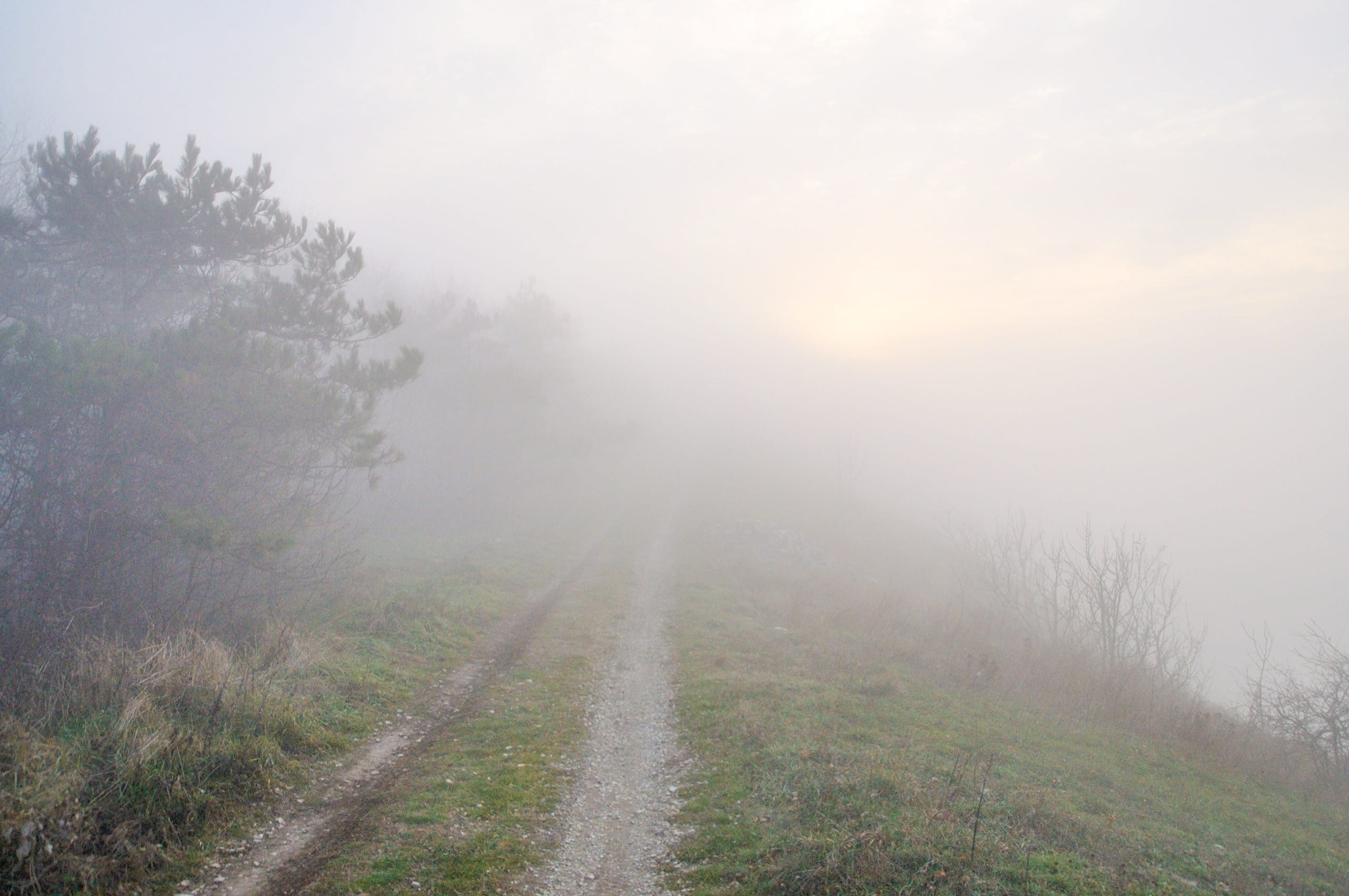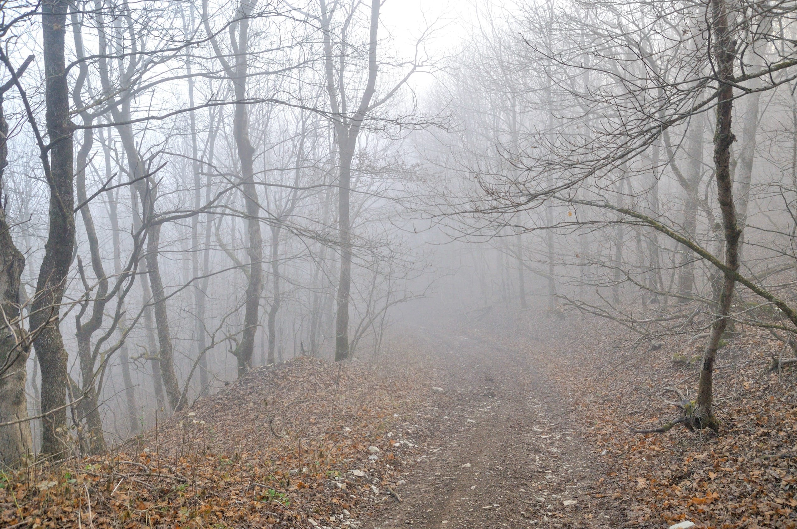 Мы продолжали свой путь по гребню. Панорамой Новороссийска любовались недолго, совсем скоро дорога утонула в молочной реке, облаке, стекающем из-за гребня, вниз по склону, к карьерам. Река оказалась красивой, но неширокой, туман расступился и впустил нас в лес.