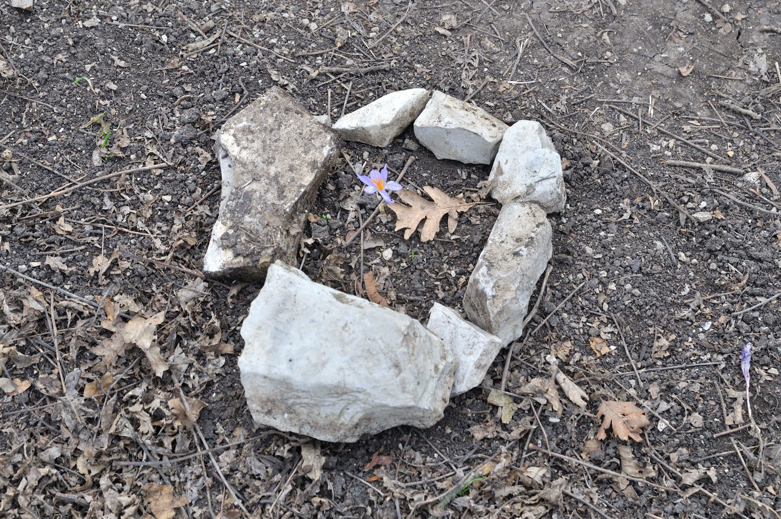 Фото 30–31. Цветок прямо на дороге. Не удержались обложили камнями, чтобы его ненароком не раздавили.