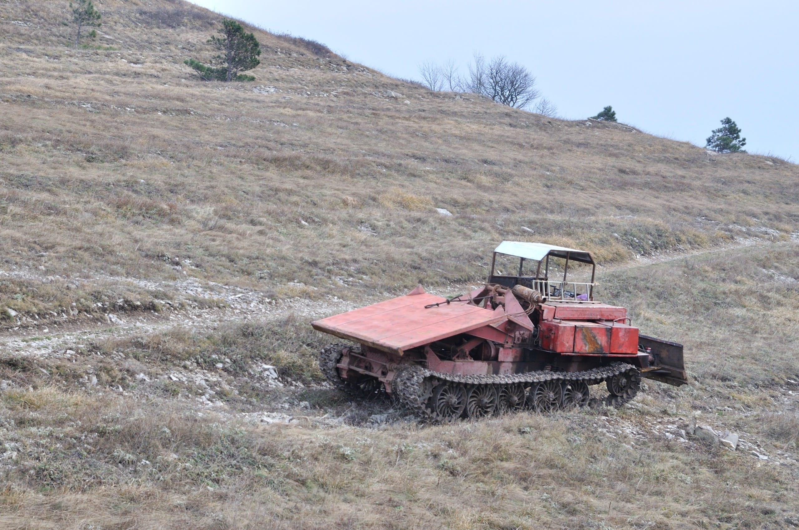 Фото 34. Тяжелая техника на склонах. Предположил, что это один из тех бульдозеров, которые нарезают или нарезали террасы.
