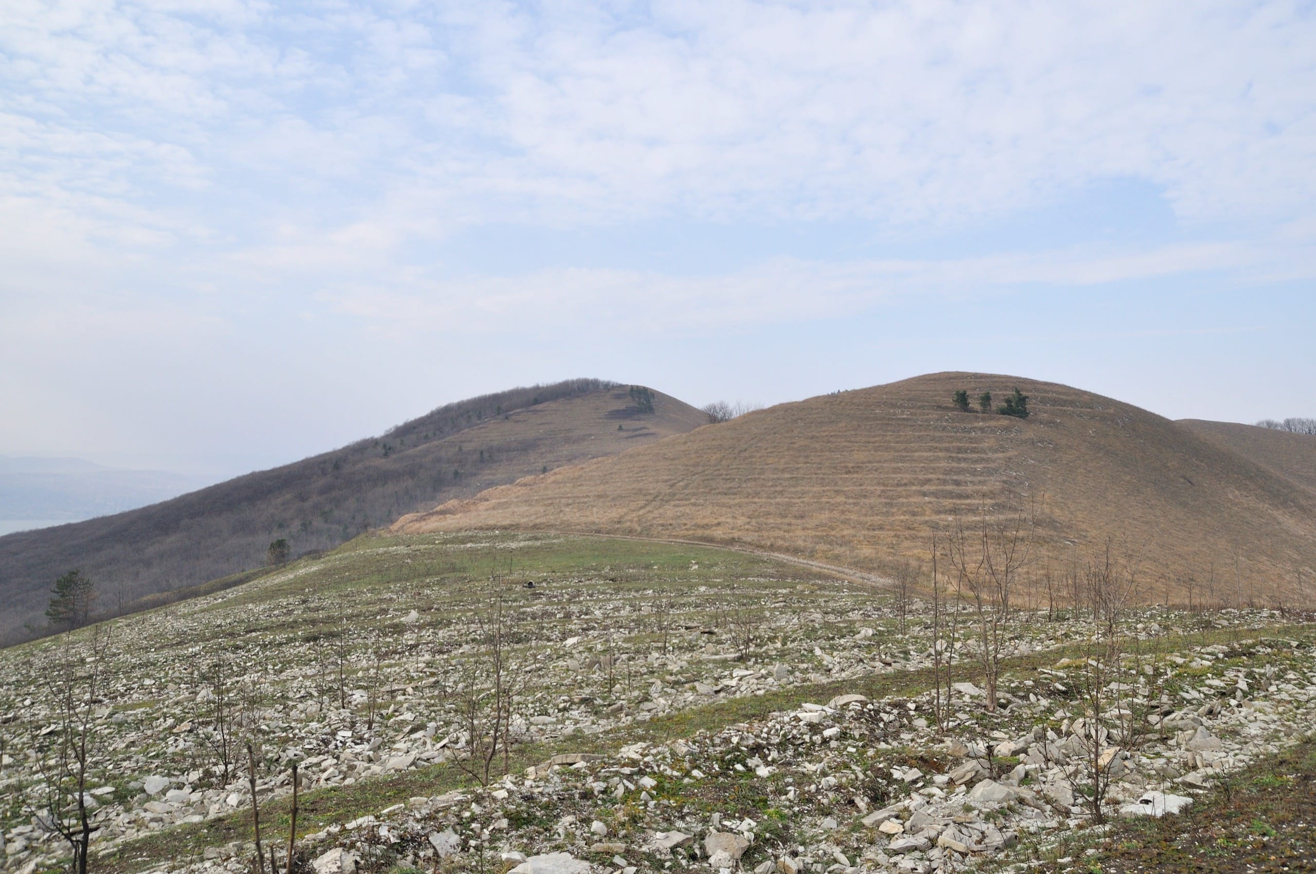 За 639-й высотой, когда мы вышли из очередной полосочки леса перед нами предстал склон, нарезанный аккуратными кругами, почти такие же полосы, о которых я писал чуть выше, только меньше размерами. Что это? Естественность таких аккуратных образований отмели сразу. У меня возникло предположение, что это следы некогда бывших на этих склонах виноградников, однако истина оказалась куда интереснее.