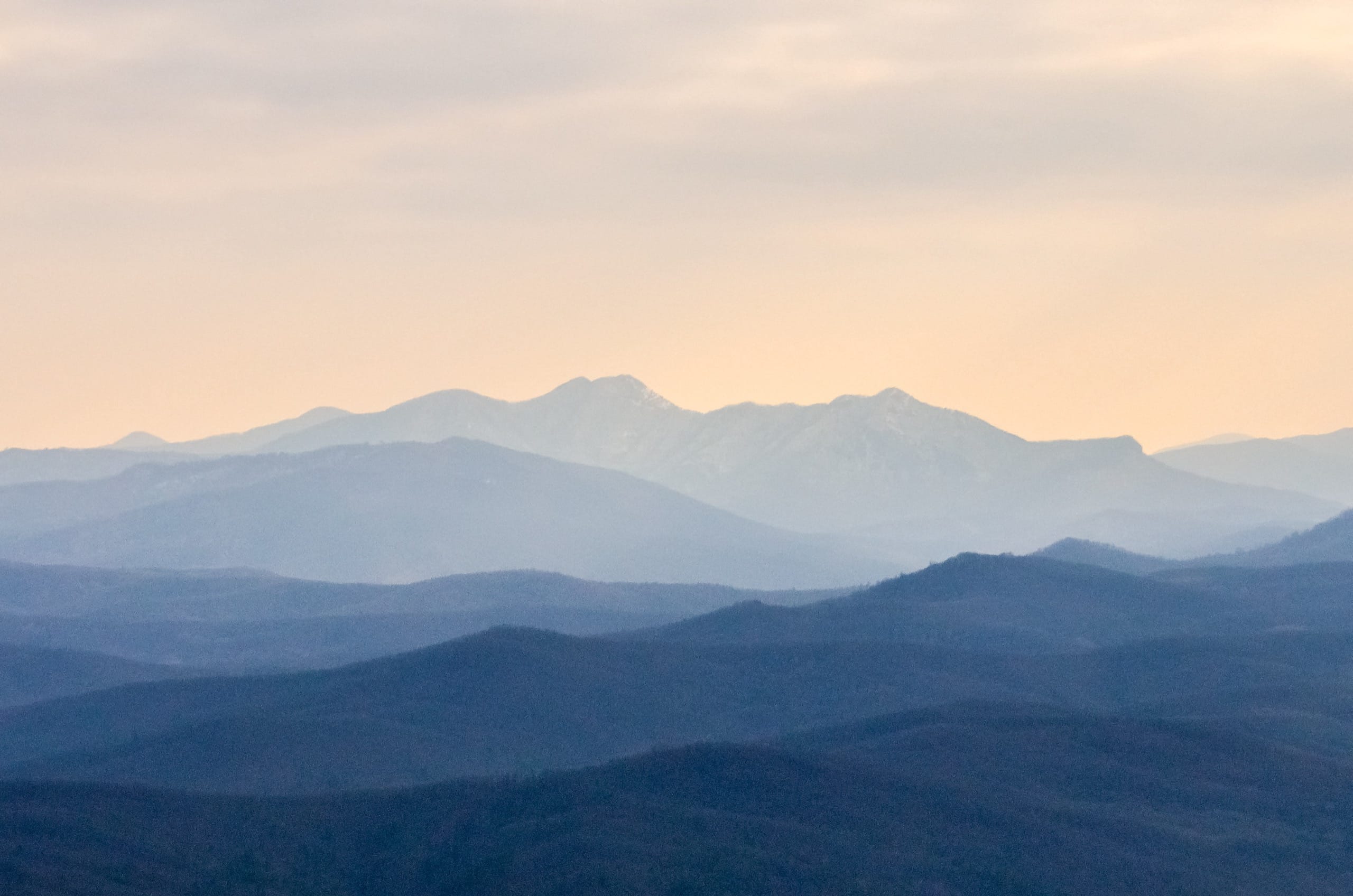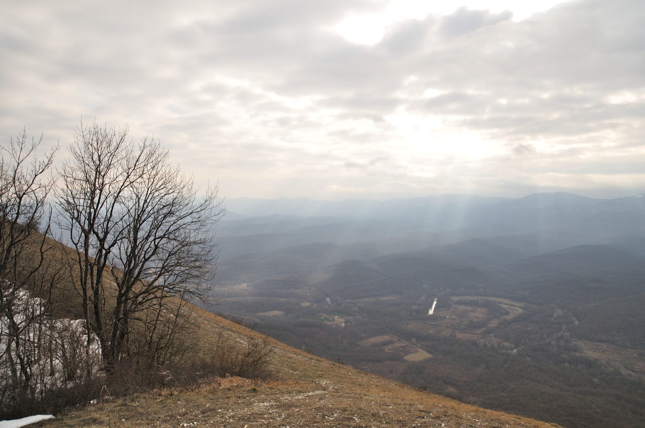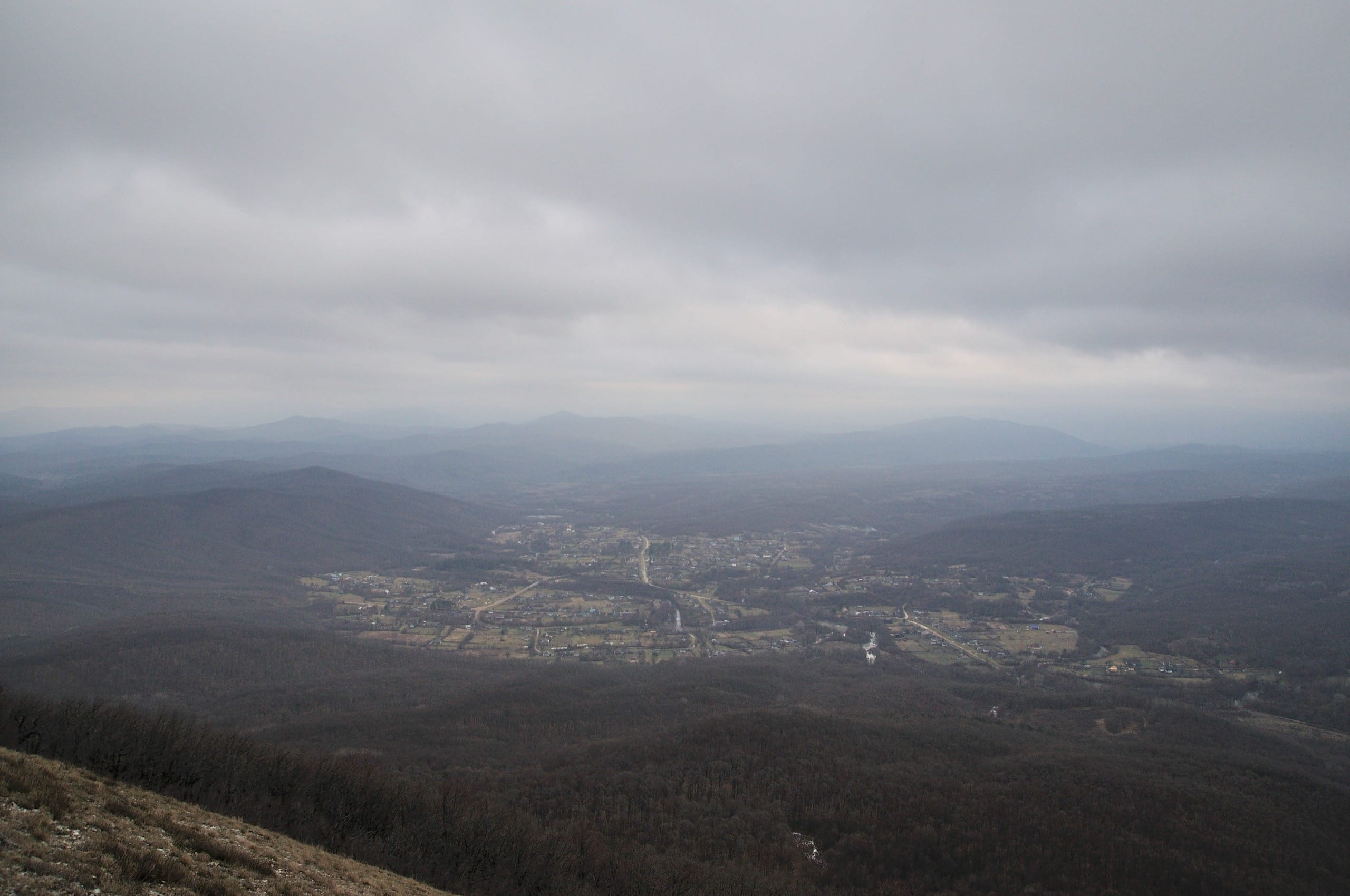 Фото 11. Долина реки Абин, вид с вершины Шизе. Хребет Коцехур на заднем плане.