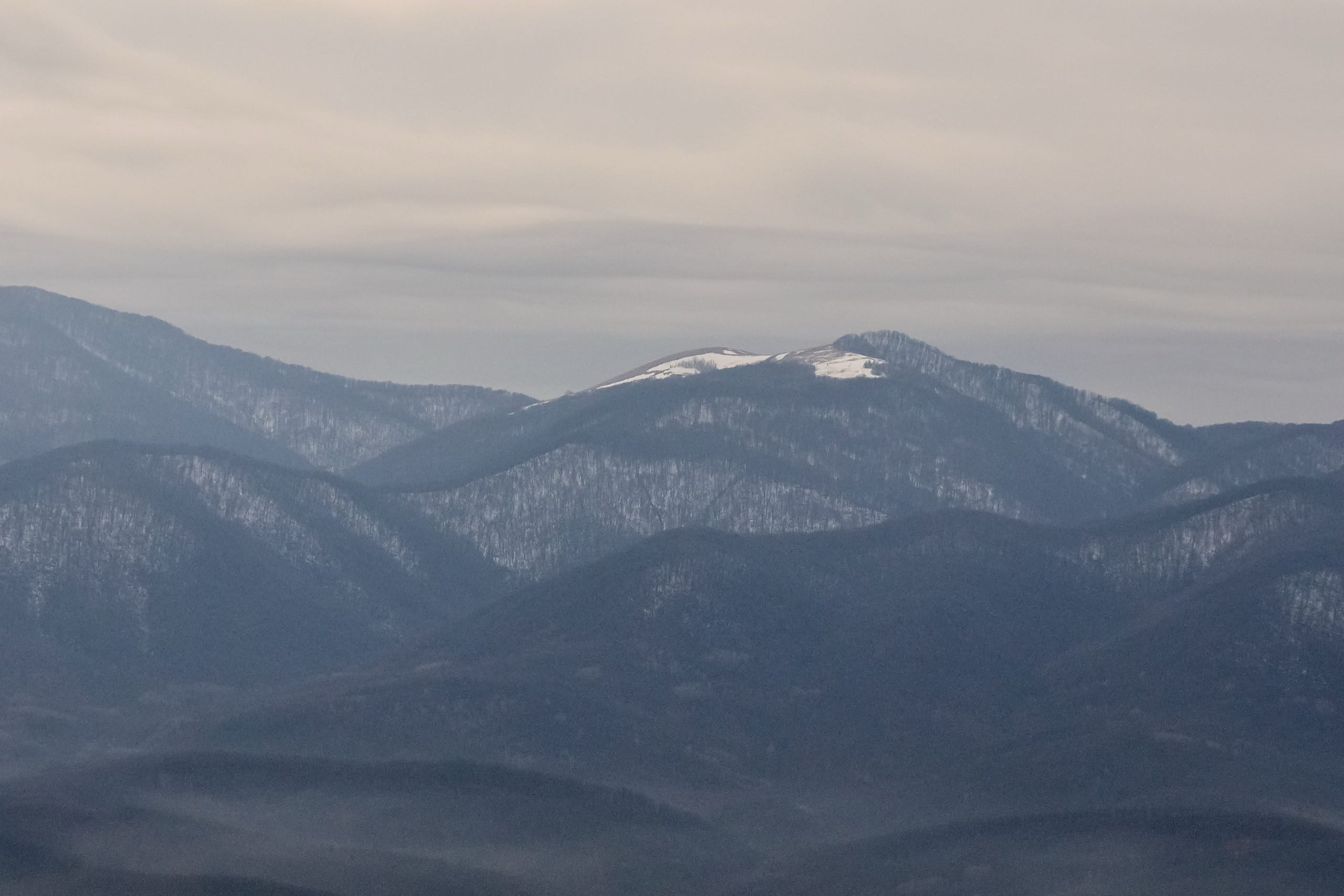 Фото 17. Северная сторона вершины Шизе. Лесом поросшая, снегом припорошенная.