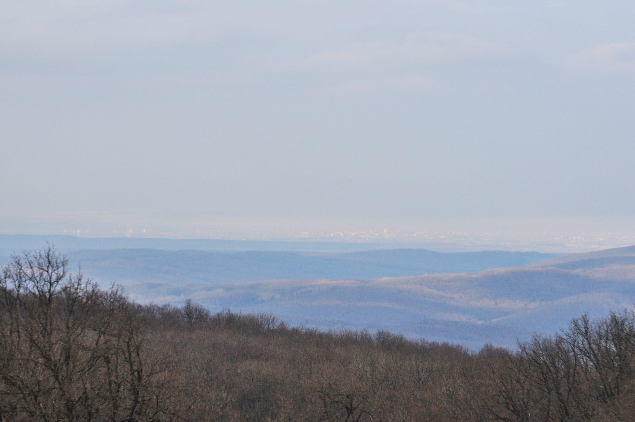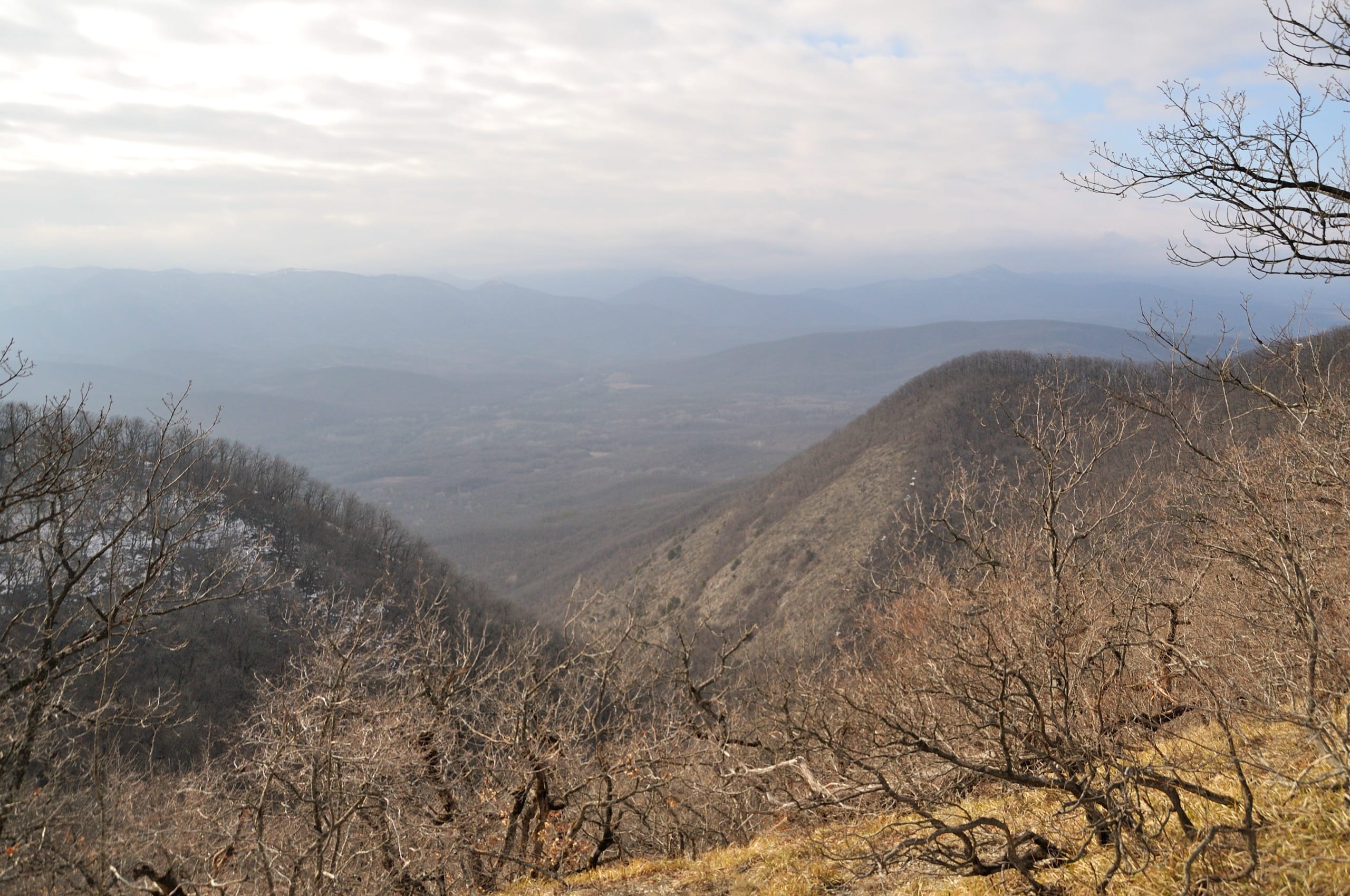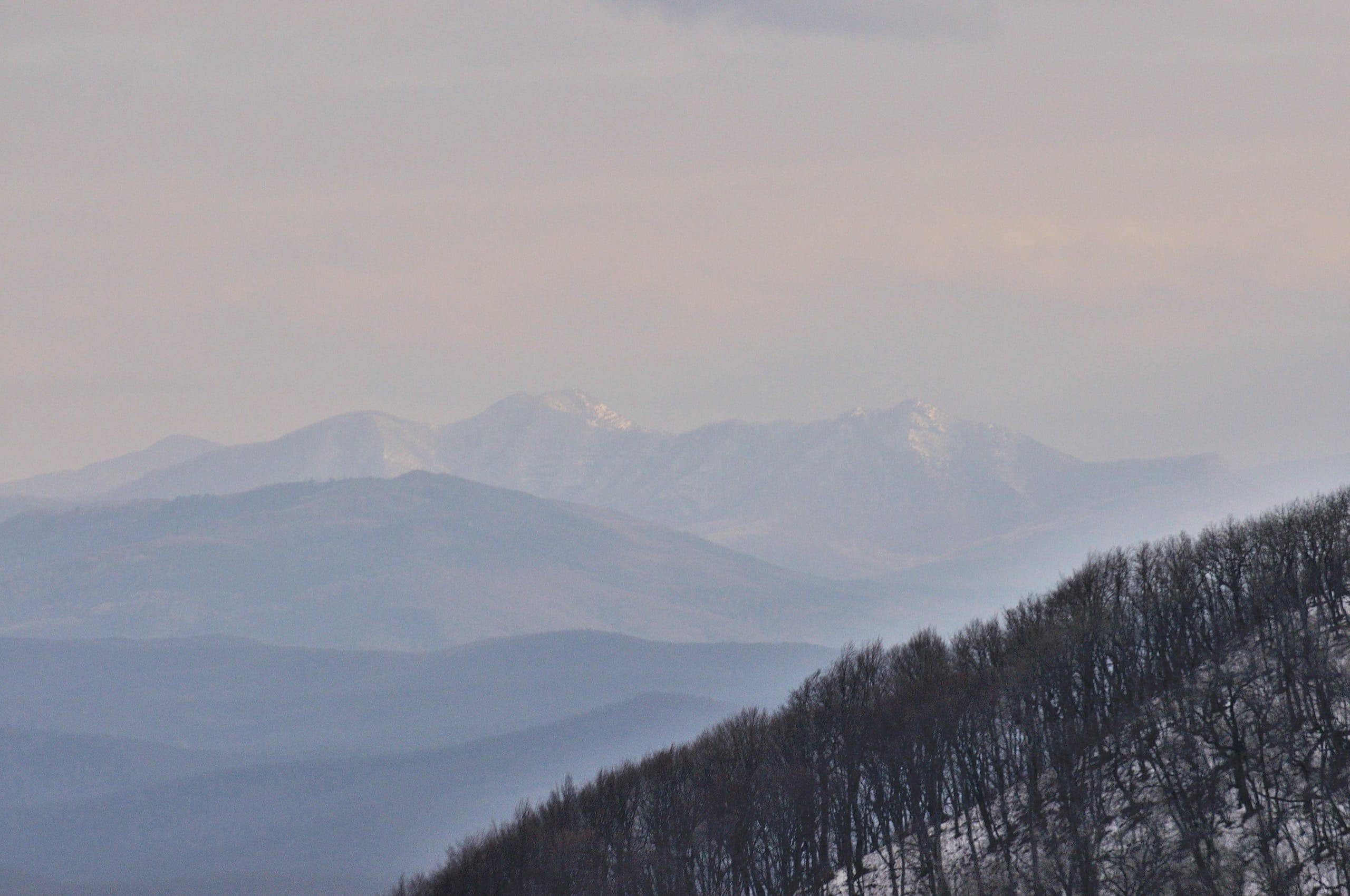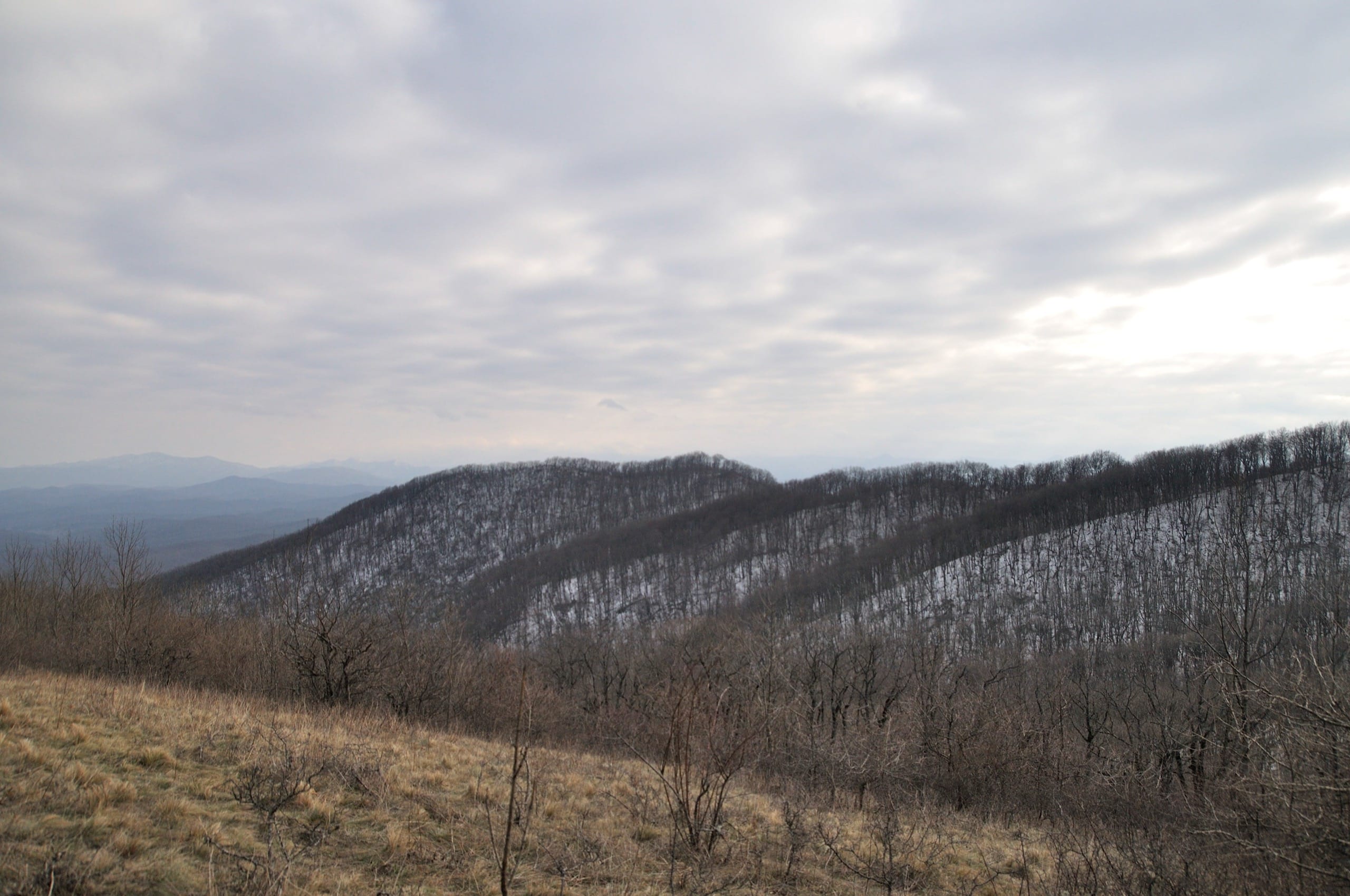 Фото 2. На перевале Эриванском. Вид на гору Шизе сквозь голые кроны деревьев.