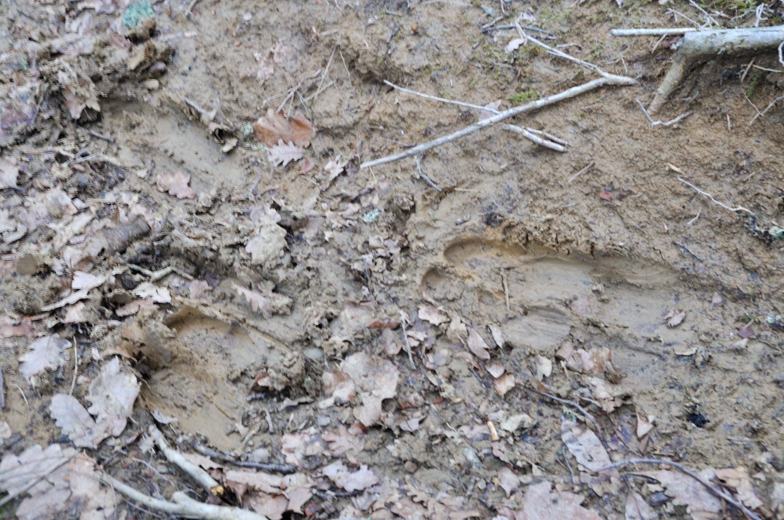 UPD2025. Конечно, это были собачьи следы. Отличить просто: проводим линию по верху крайних подушечек, если две центральные подушки выше этой линии, то вероятно перед нами волчьи следы; а если линия прорезает средние подушечки, то это собака. Пересмотрел фотки, в нашем случае ходила собака.