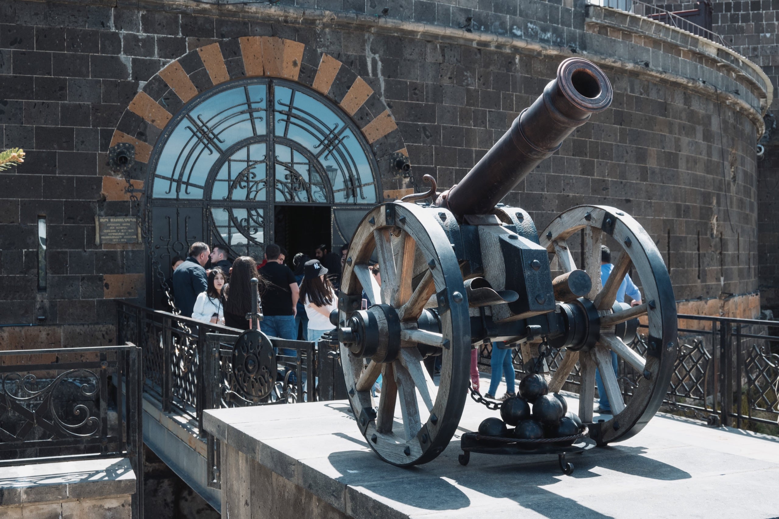 Если хочется посмотреть на крепость целиком, то лучше это делать со стороны, например, с площадки у основания «Матери-Армении», а вблизи остаётся любоваться деталями.