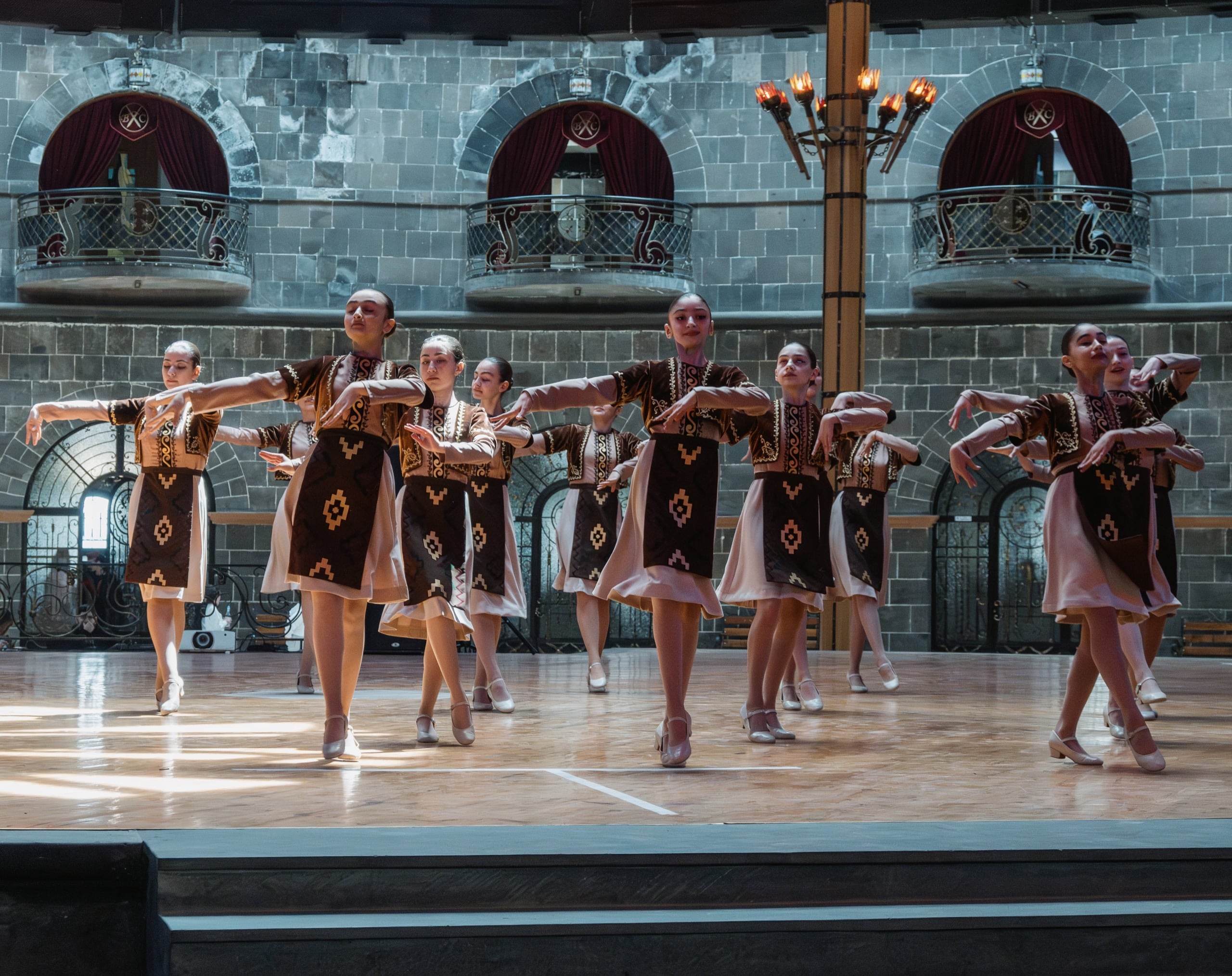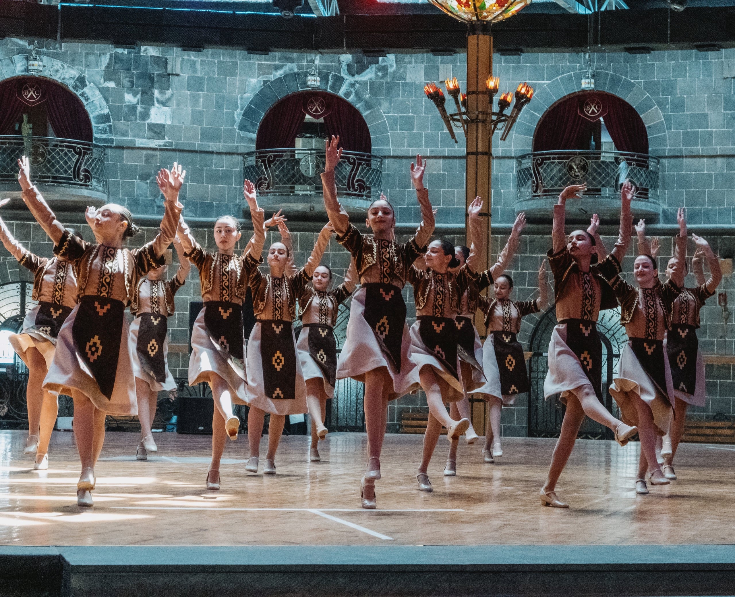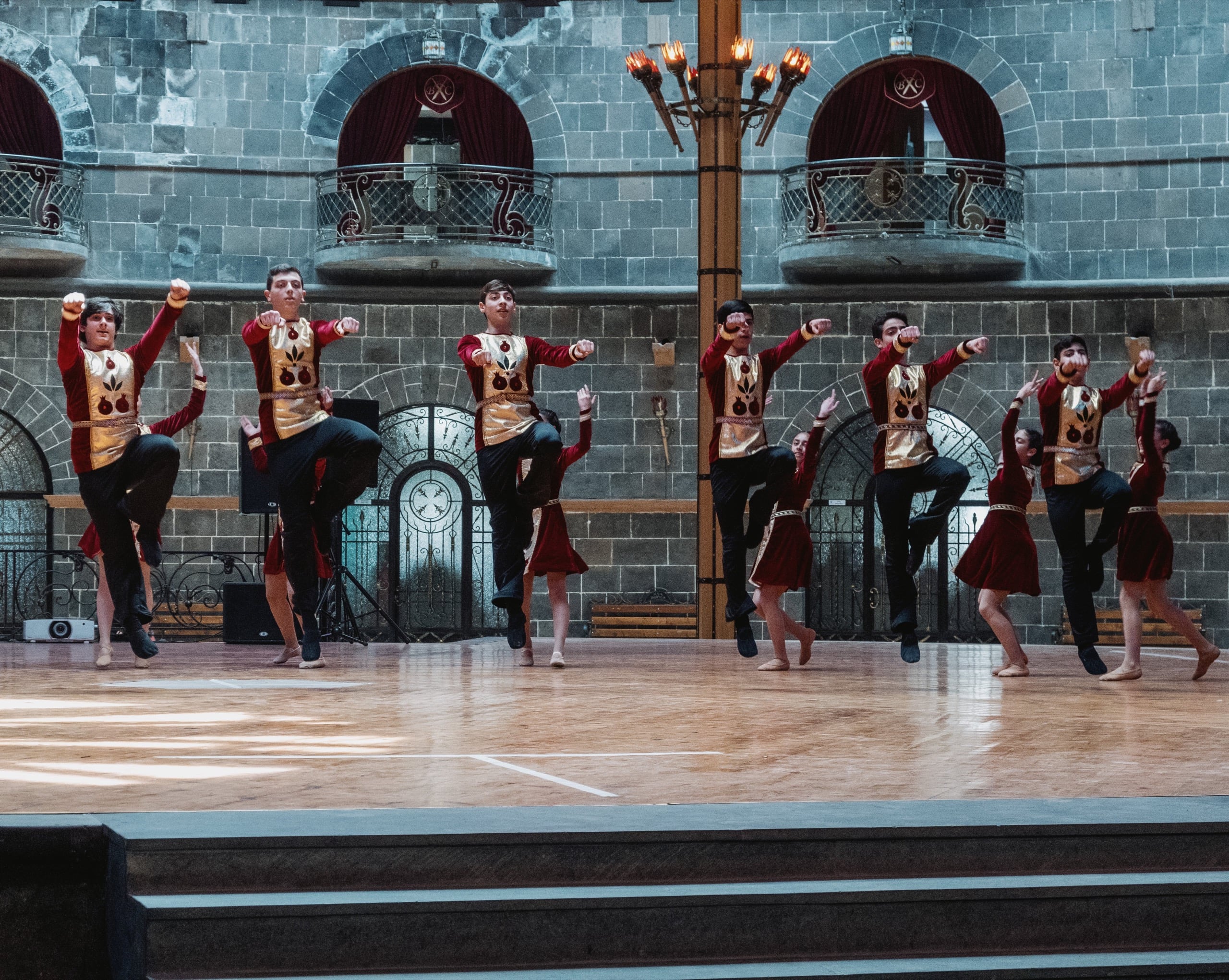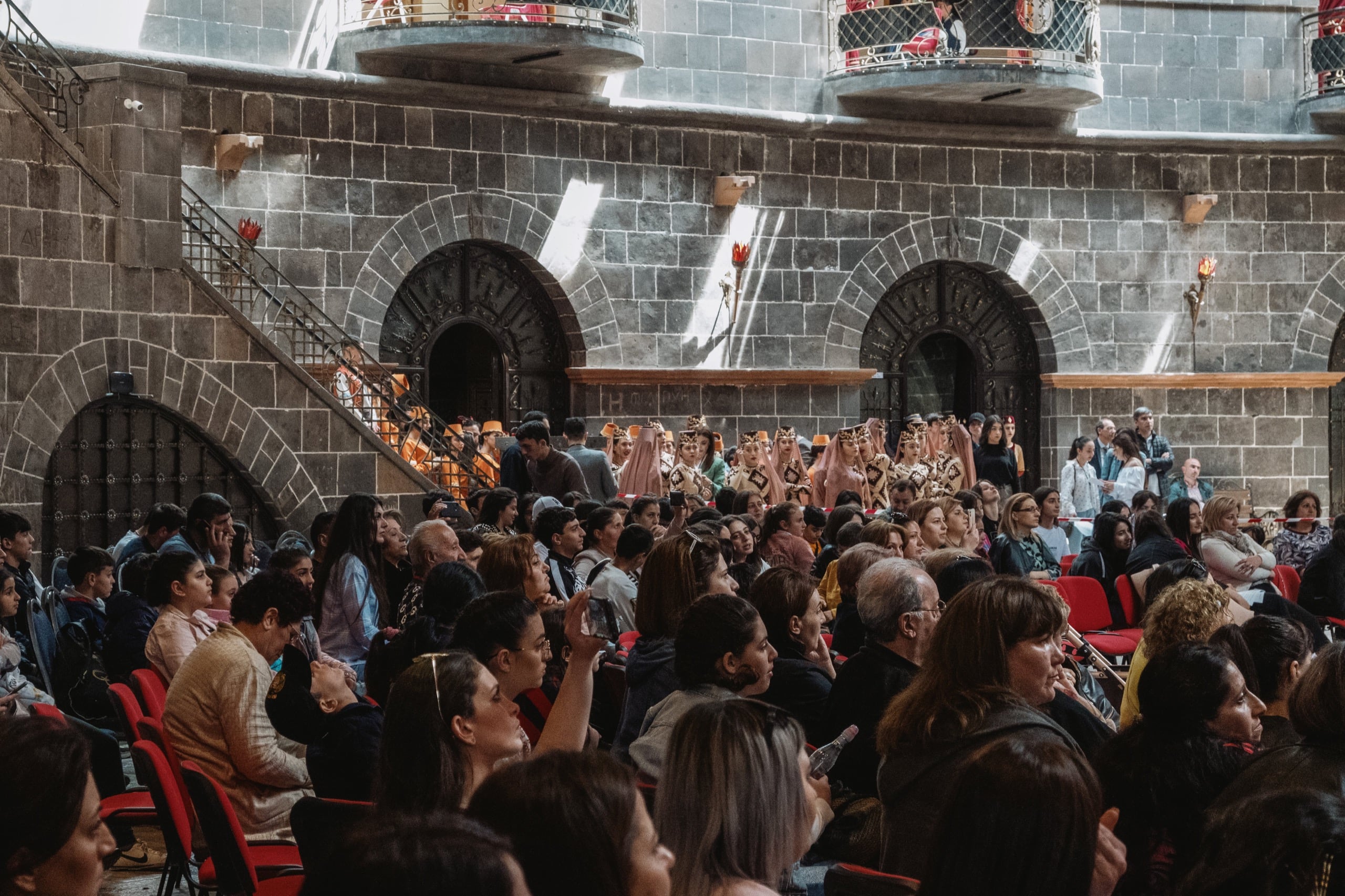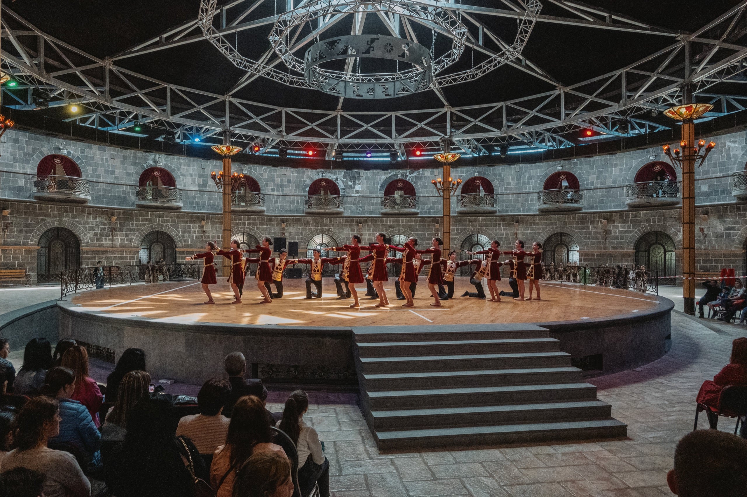 Внутри проходил фестиваль народных армянских танцев. Один за другим выходили на сцену танцевальные коллективы.