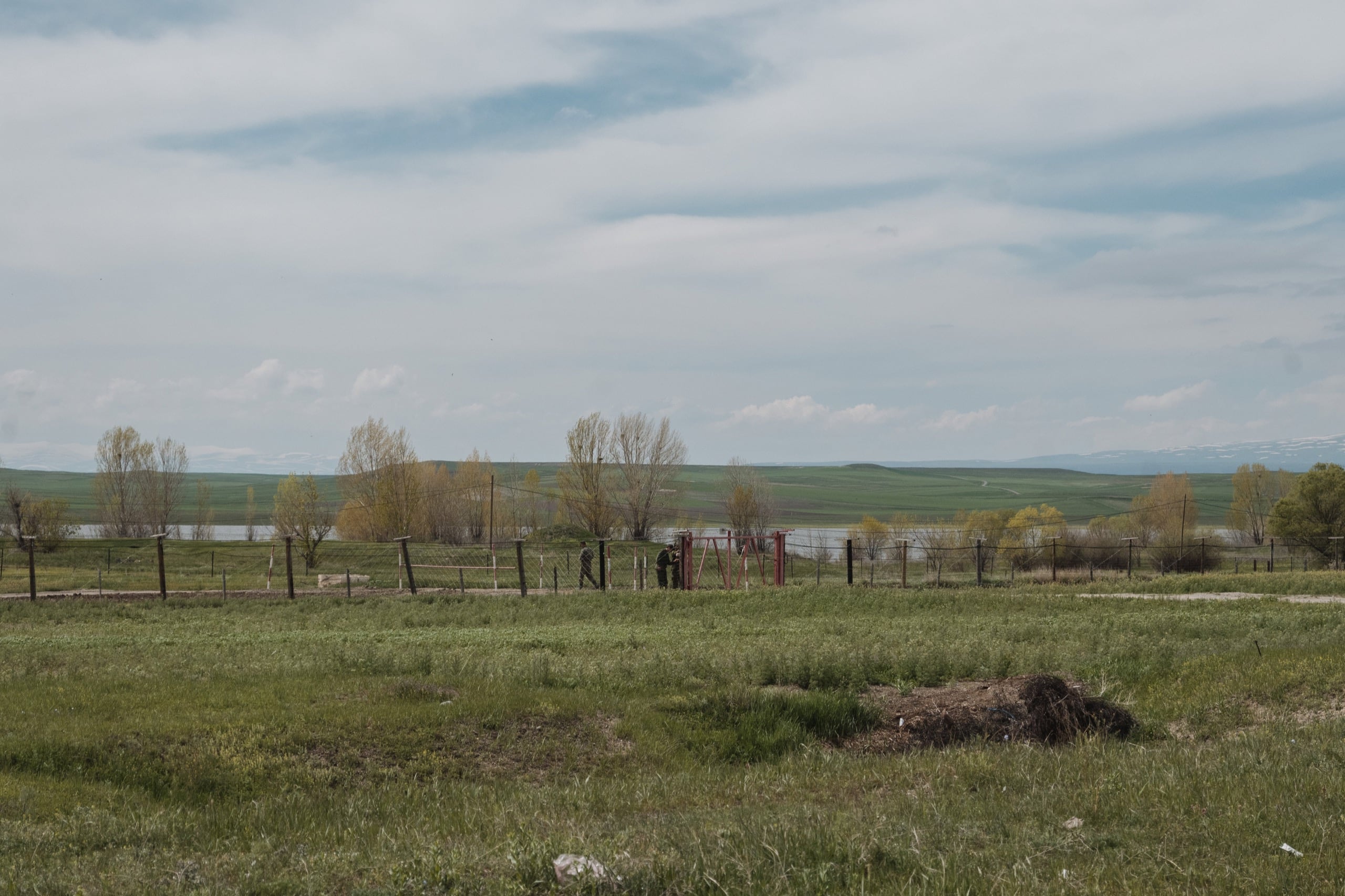 Приехали к водохранилищу и поняли, что к берегу не подойдём. Дело в том что через водоём проходит государственная граница Армении и Турции. Вдоль берега протянулась колючая проволока, вход за забор только по пропускам.