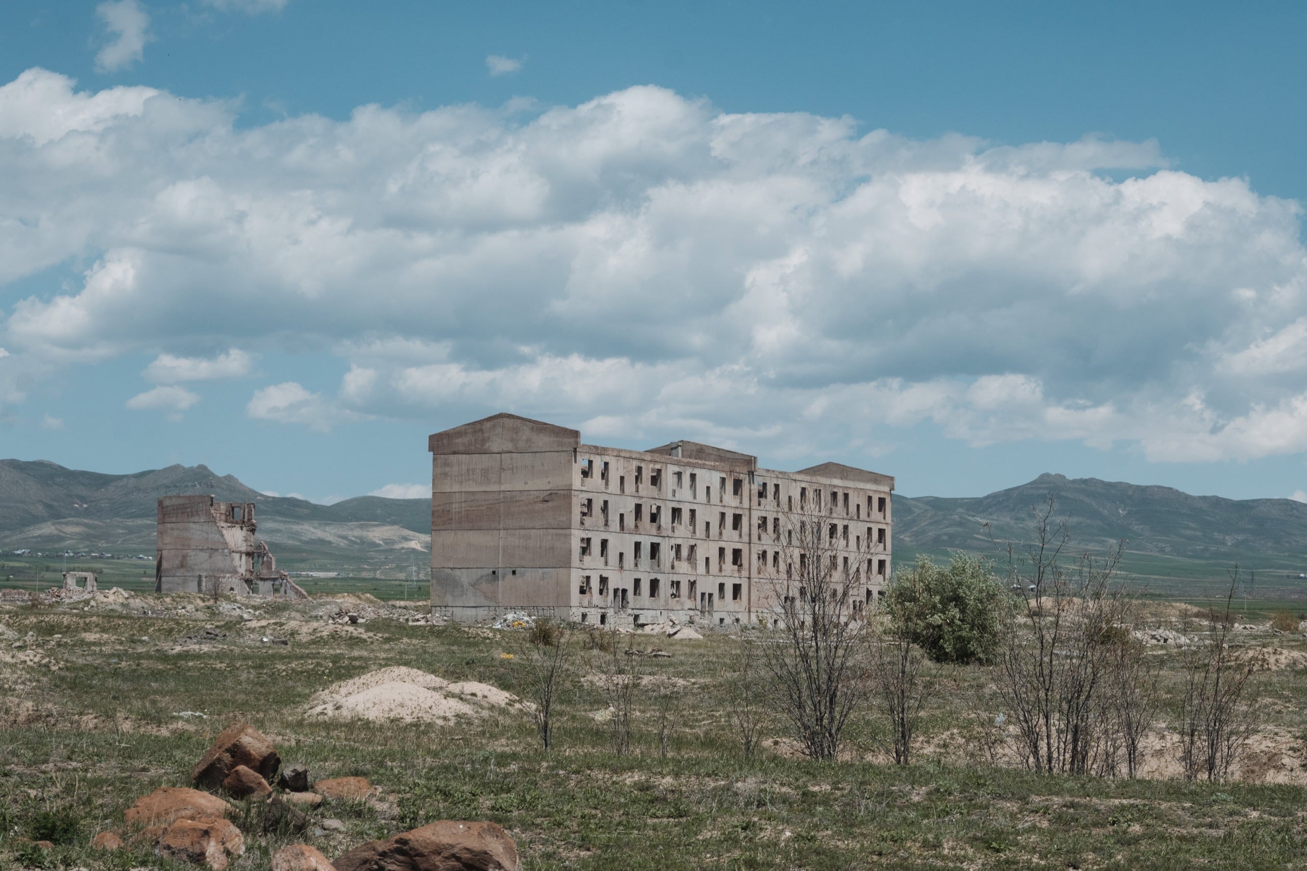 Все окраины Гюмри завалены строительным мусором. Нет, это не чьё-то разгильдяйство, это эхо той страшной минуты, в которую Ленинакана не стало. Обломки зданий свозили к окраинам и теперь они плотным поясом окружают город, напоминая о трагедии.