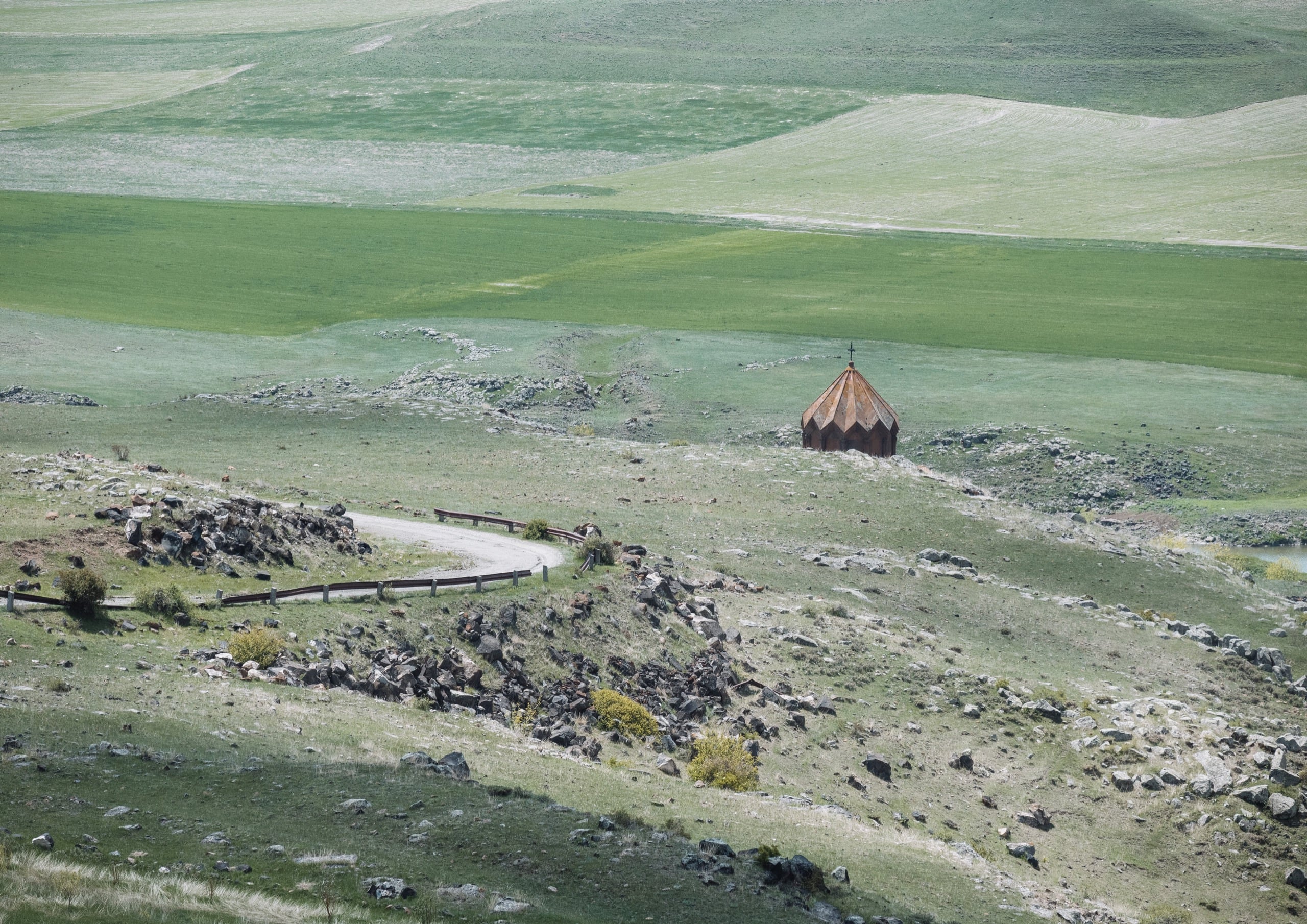 «Разбитое» — написал бы я, оставив без комментариев, пиши этот рассказ по горячим следам. Но я восстанавливаю первую поездку к монастырю в августе 2025-го и к этому моменту, что участок шоссе «Гюмри–Ваграмаберд», что спуск от села Ваграмаберд к монастырю Мармашен представляют собой капитально отремонтированные дороги, катиться по которым одно удовольствие.