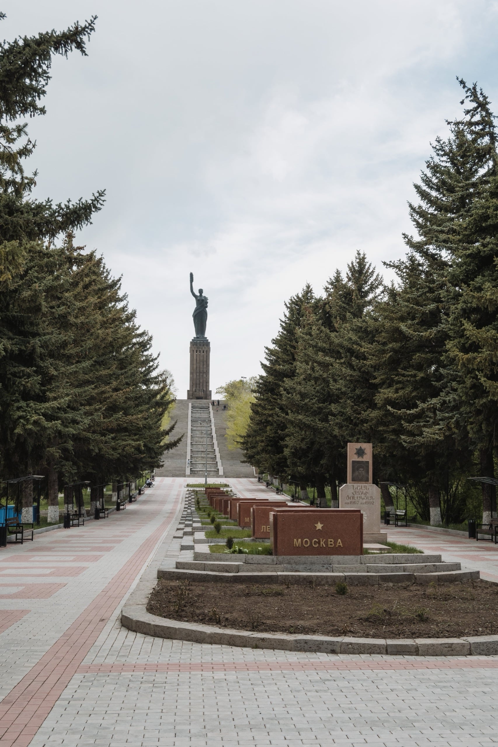 Проехали к следующей точке маршрута — монументу «Мать-Армения». От дороги к ней ведёт длинная аллея.