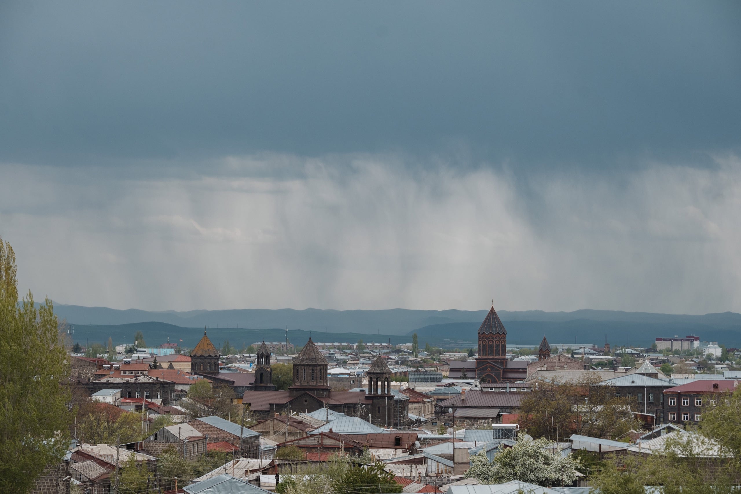 Поехали в центр, пообедали и продолжили кататься по городу. Из этой части оставлю одно фото — вид с моста на улице Алекса Манукяна в сторону площади Варданац. И этим кадром завершу пост.