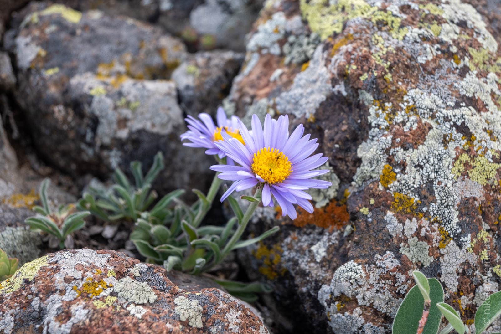 Выпили по чашке чая и пошли обратно на гребень. Ветер понемногу стихал. Ближайшая вершина встретила множеством ярко-синих цветов, разбросанных между камней.