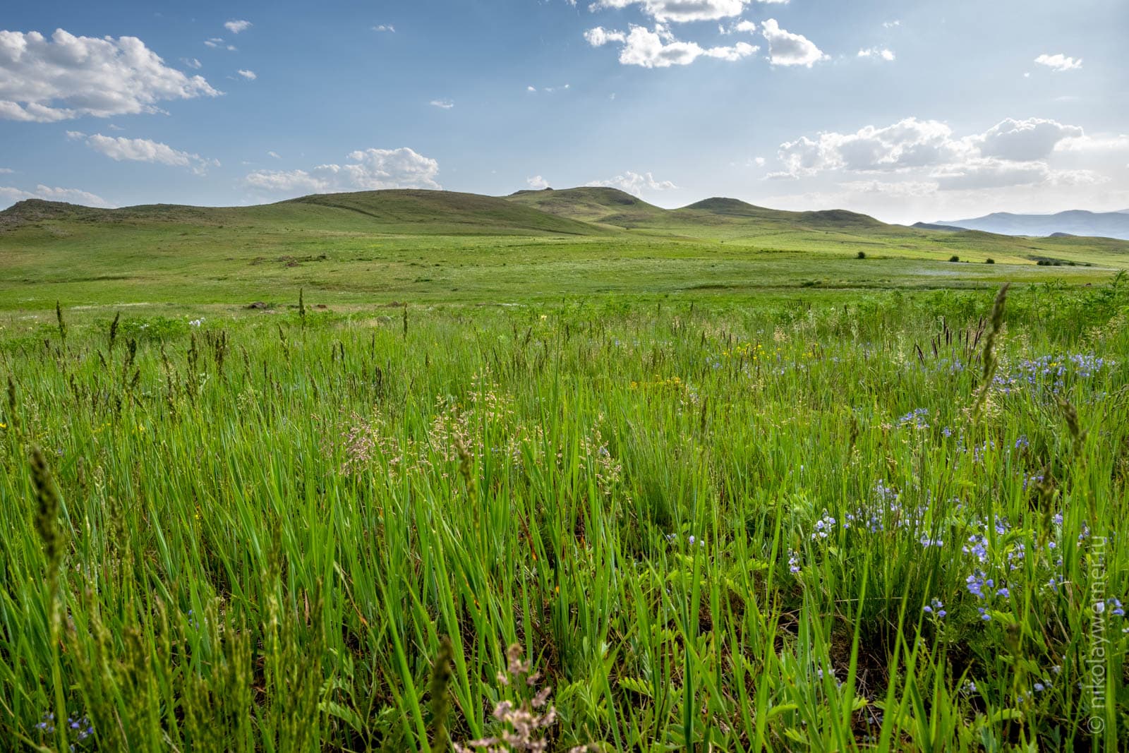 Чем ниже мы шагали, тем положе становились склоны, а трава на них выше и разнообразнее.