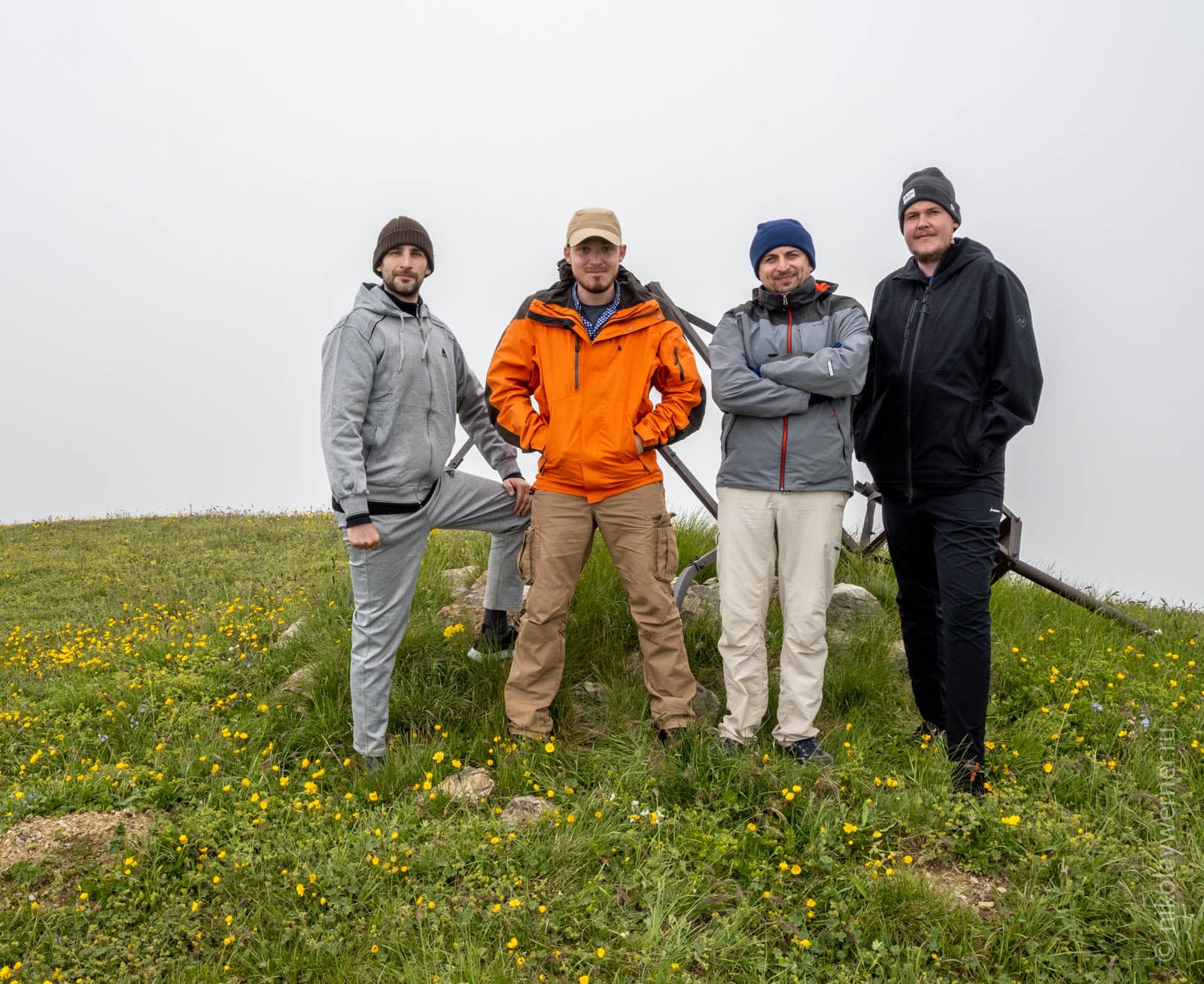 В общем, на Урасар мы пришли в «молоке», продуваемые со всех сторон. Ничего кроме разрушенного триангуляционного пункта не увидели, сделали общее фото и пошли обратно.
