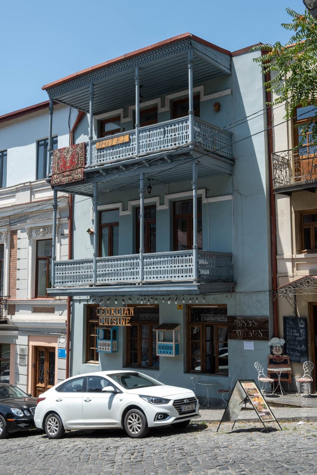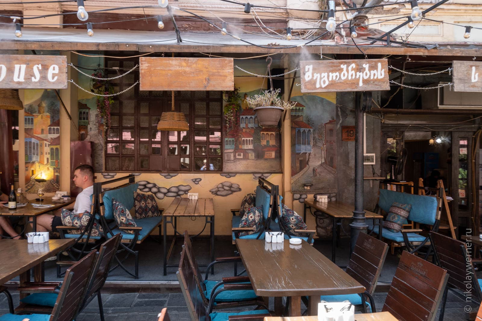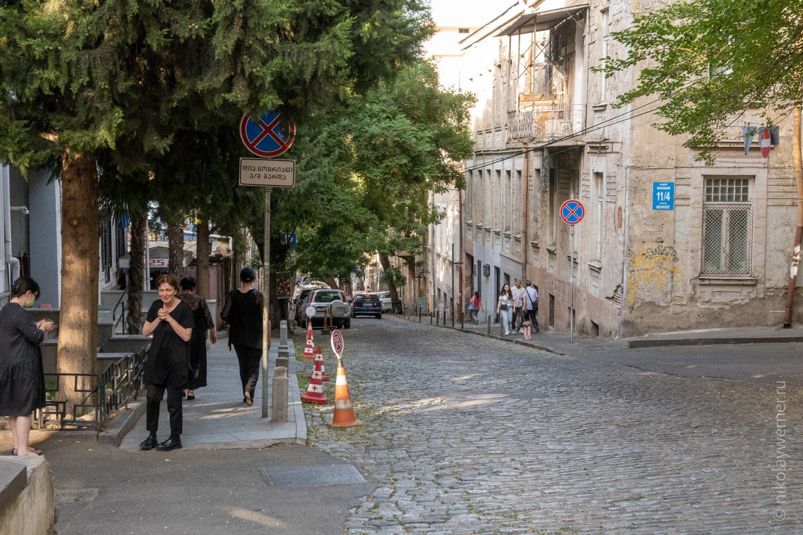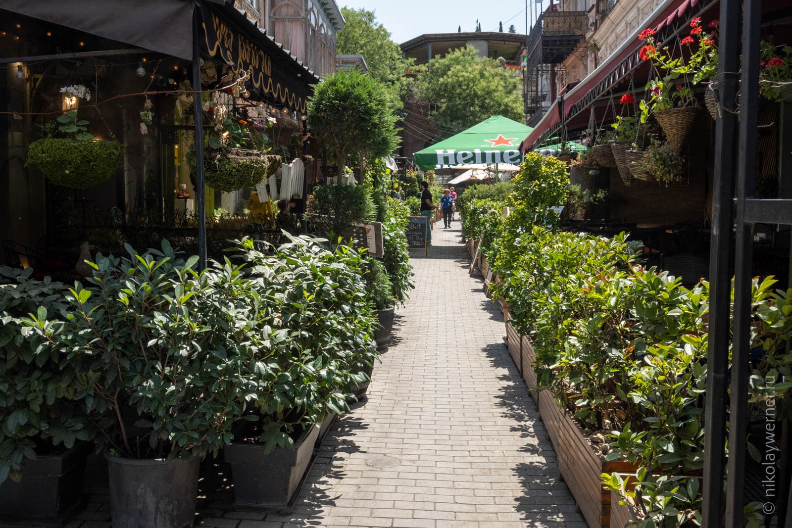 Спустившись с моста, нырнули в Старый Тбилиси. Прошли по улице Сиони, полной ресторанчиков и кафешек. Полной настолько, что для прохода между ними остаётся узкая тропинка.
