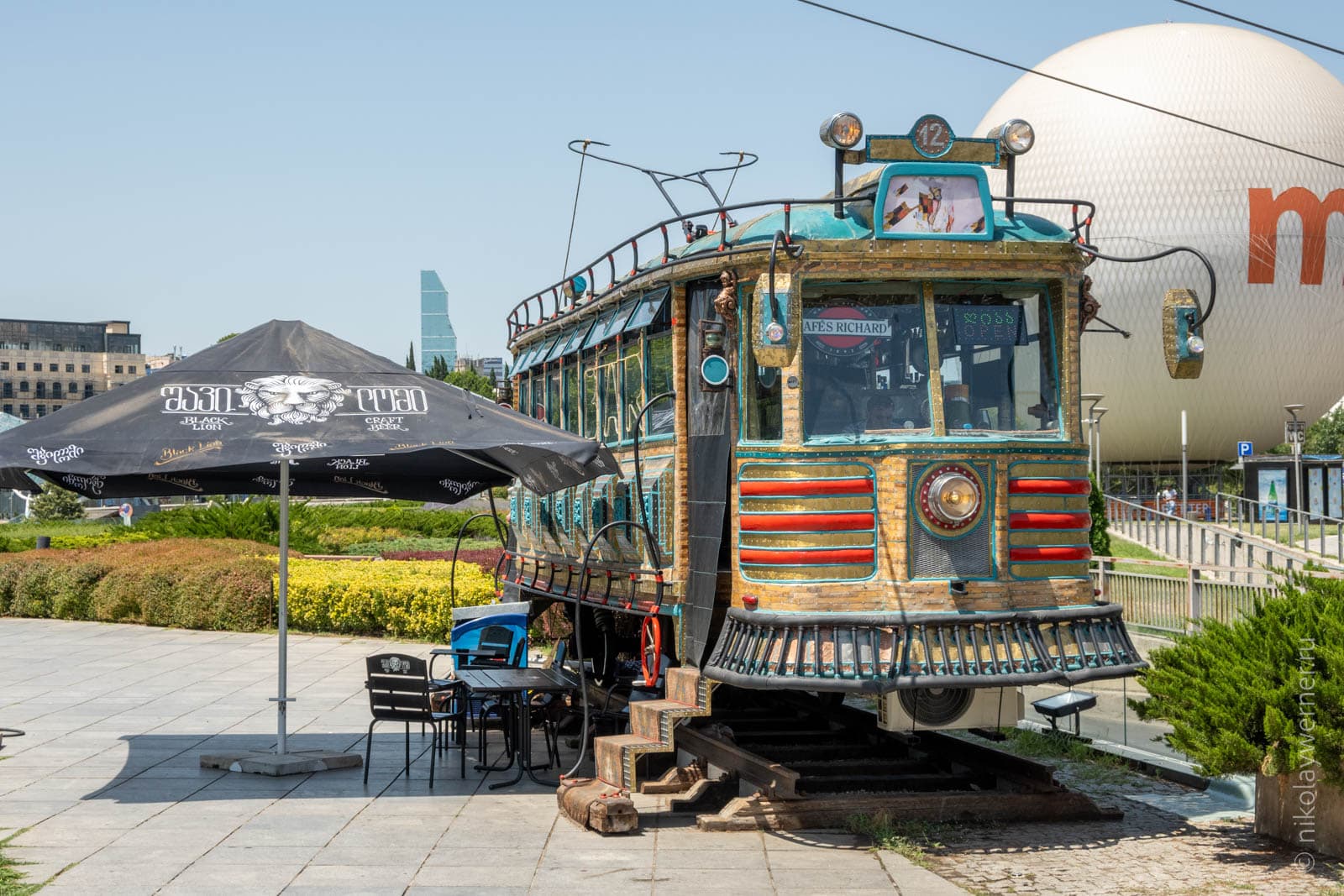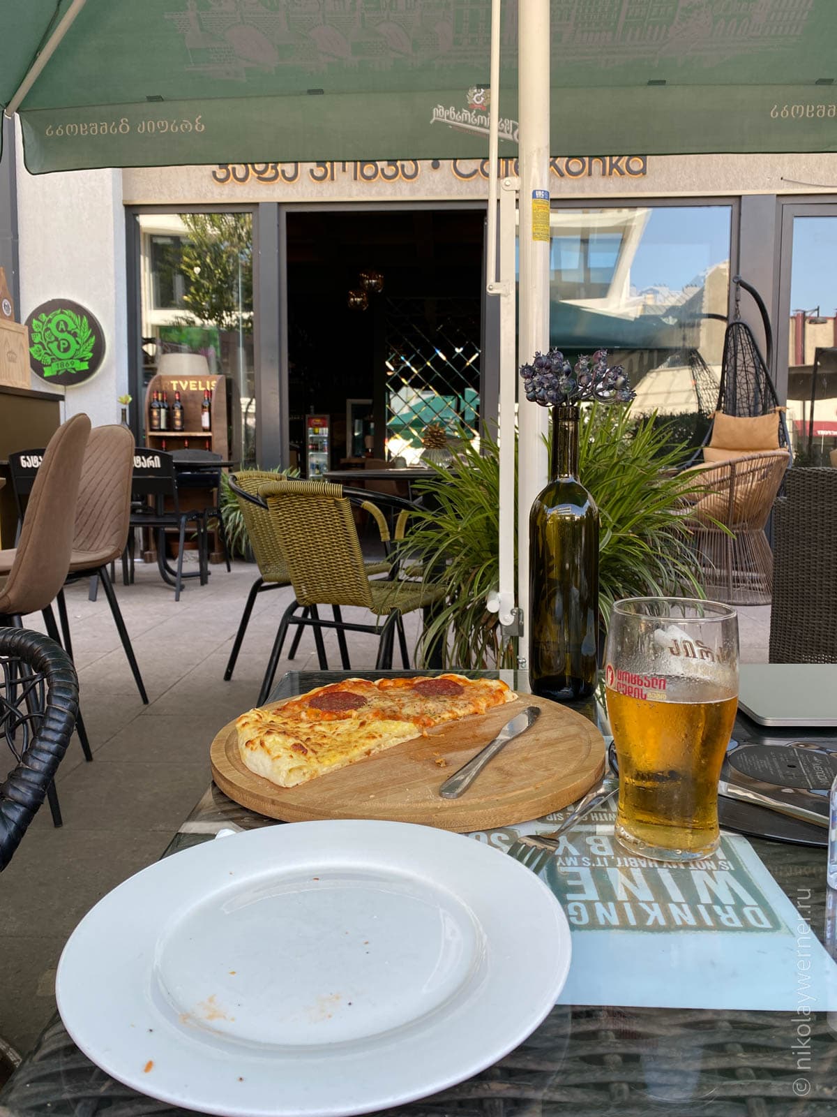 Ничего особо привлекательного в районе площади не нашли, поэтому зашли в рандомное место, которым оказалось кафе «Конка». Так себе выбор оказался, если честно. Посредственная еда за конский ценник. За четыре пива, колу, хачапури и пиццу отдали сотню лари (около 2500 ₽ на тот момент).