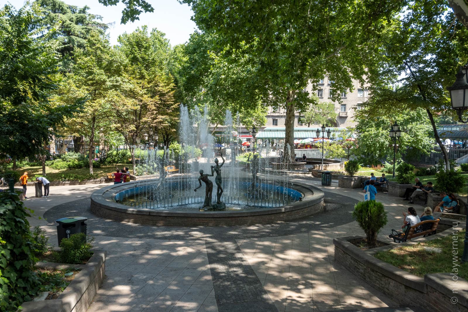 Симпатичные скульптуры в фонтане на площади Орбелиани.