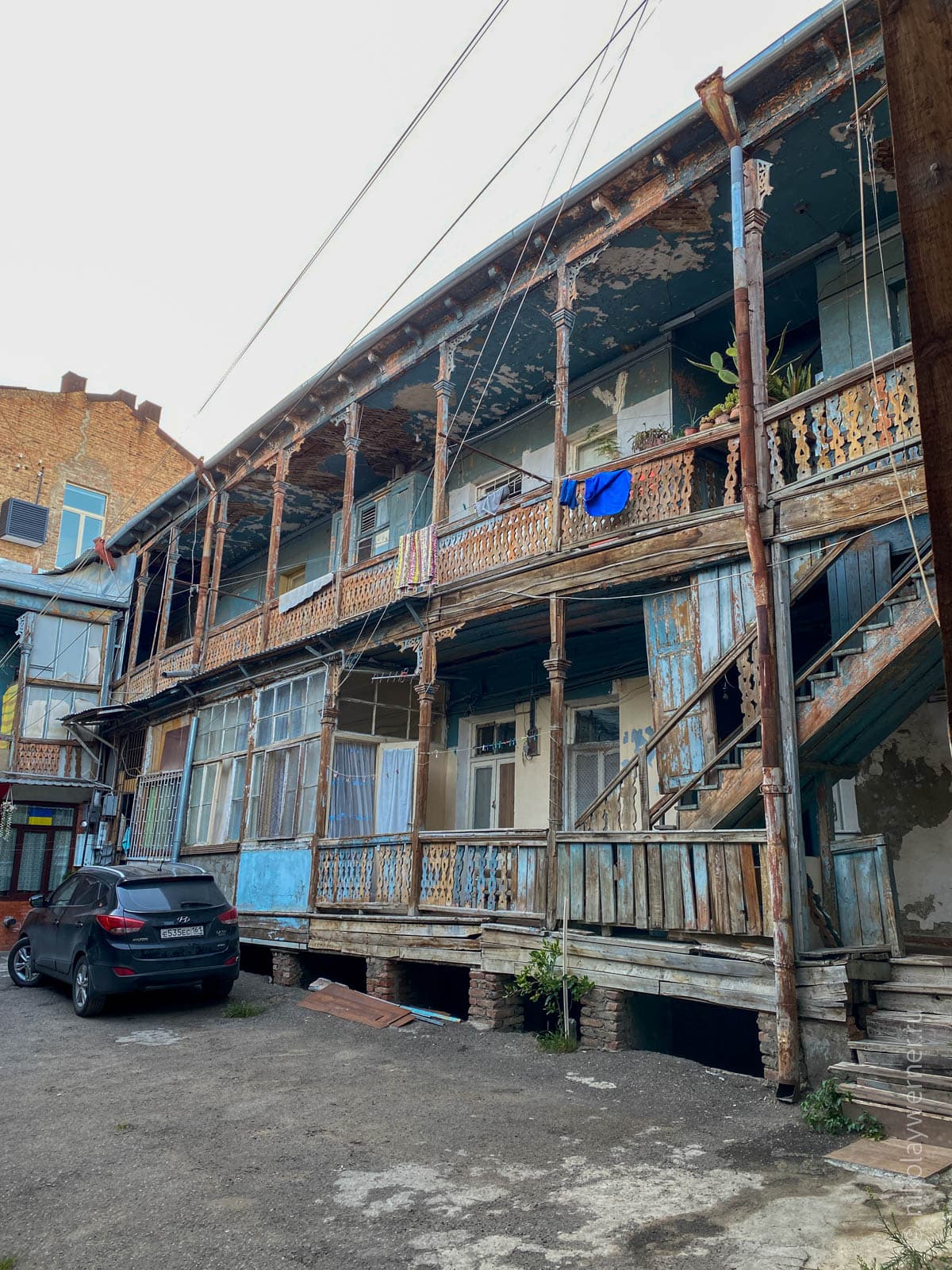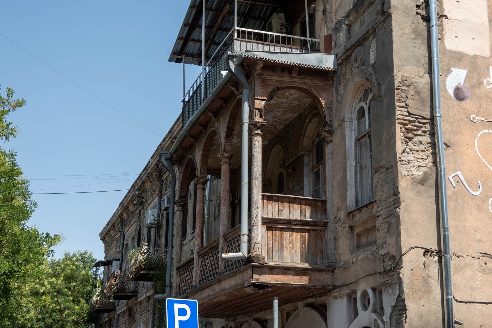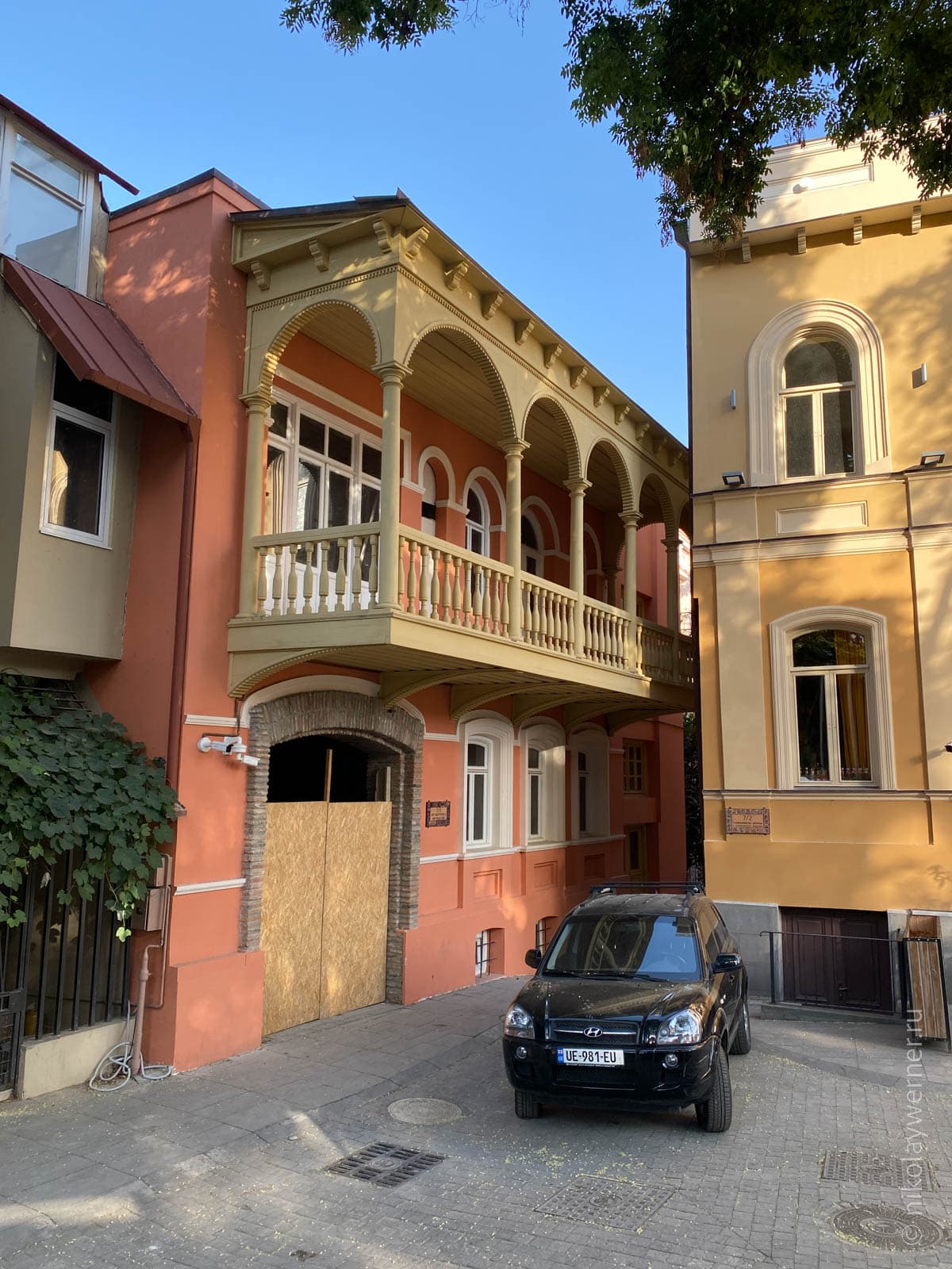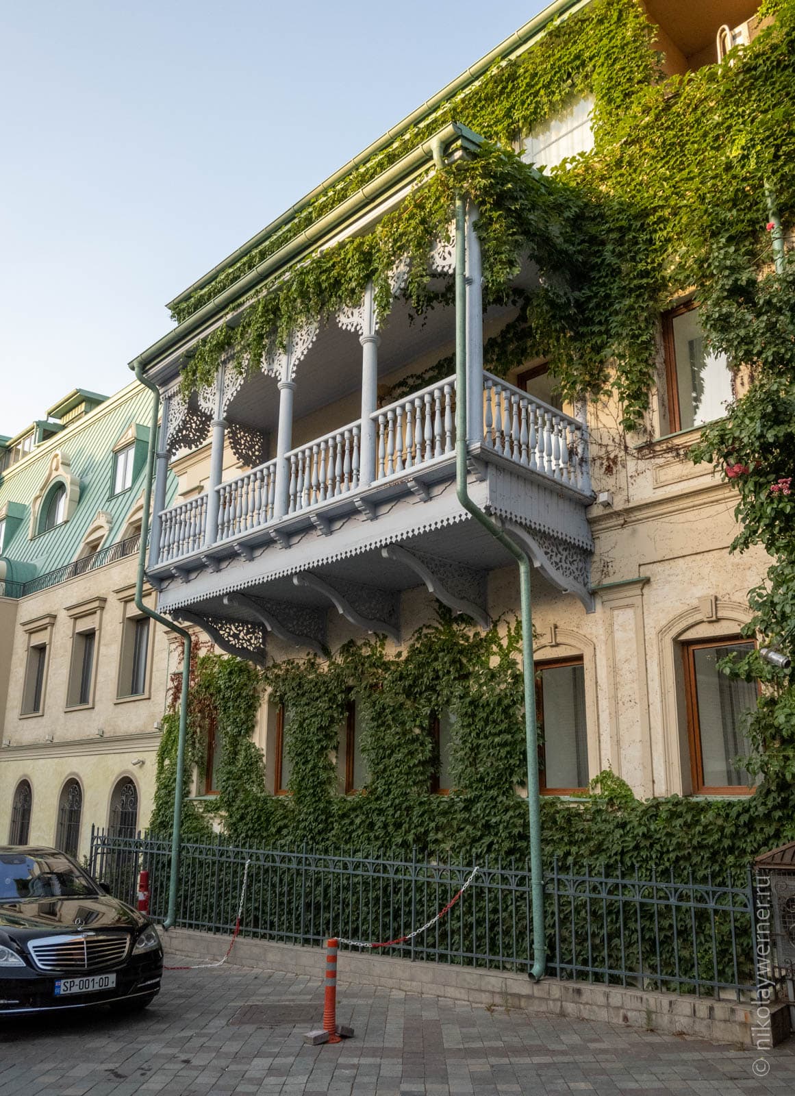 Прекрасные балконы на доме, обозначенном на картах Яндекса как «Грузинский винный центр».