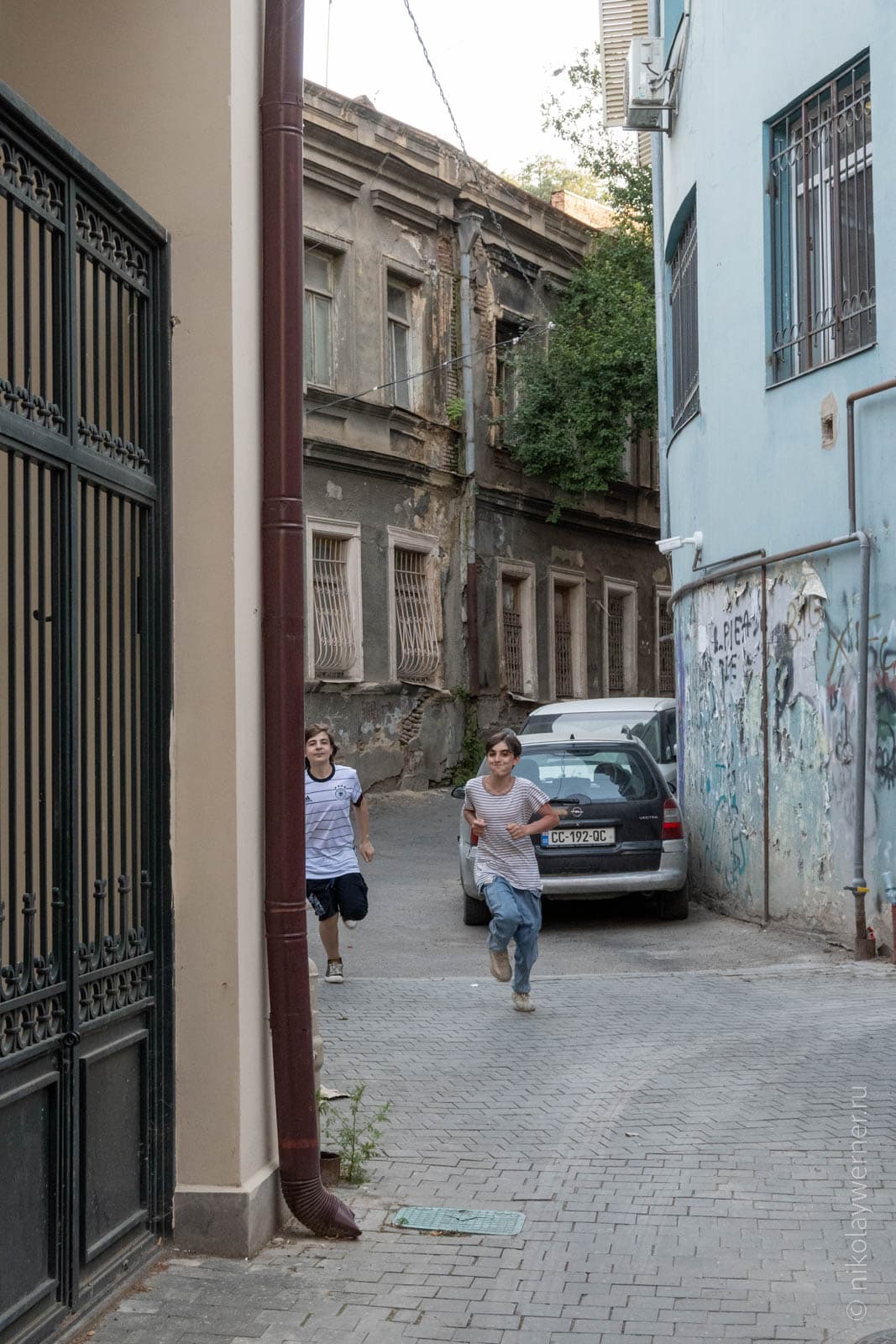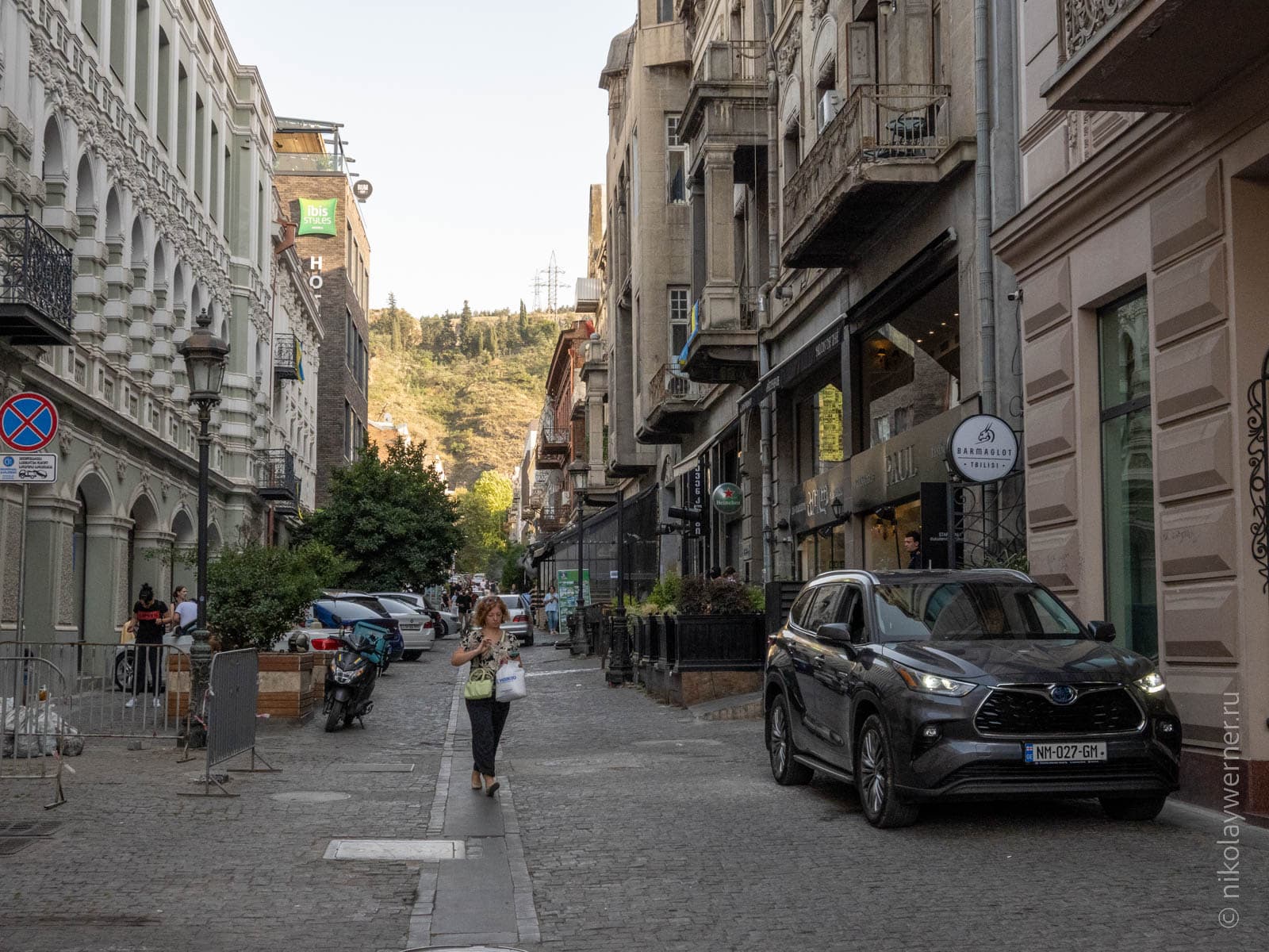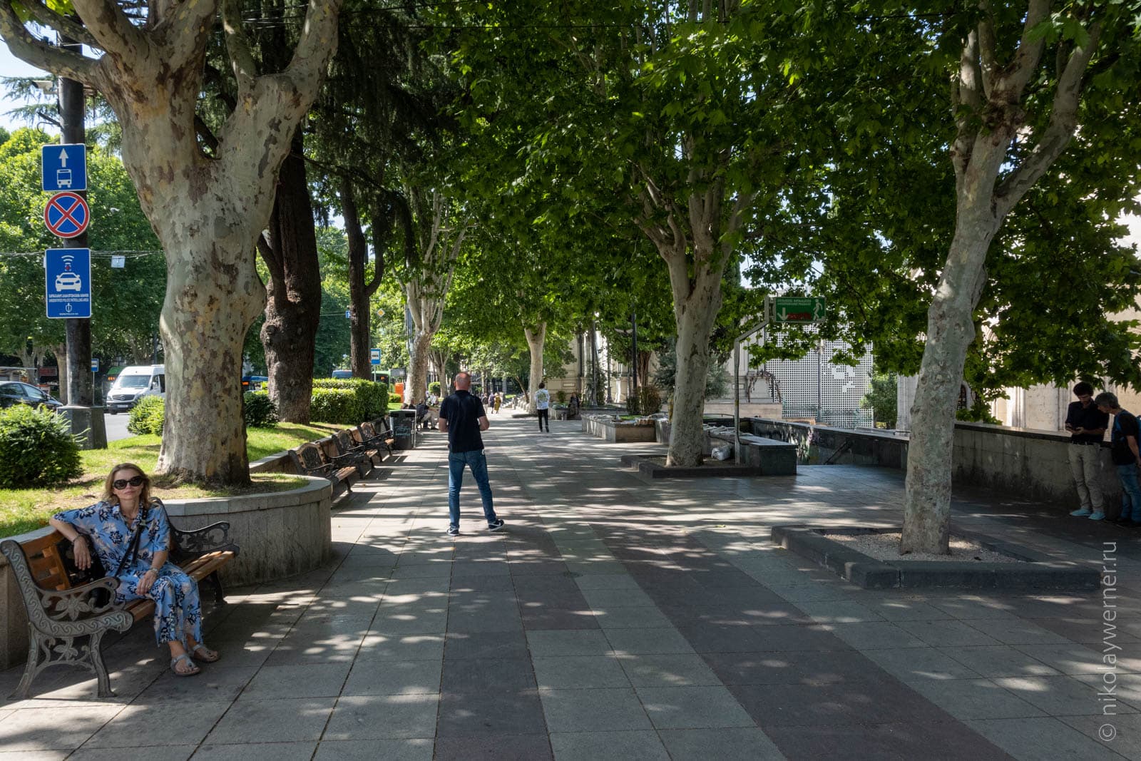 Как закончилась улица Шавтели, так и закончилось наше путешествие по глубинам старого города — вышли на проспект, улицу Бараташвили. Там, конечно, уже и простора больше и запущенности нет. Всё чисто и аккуратно.