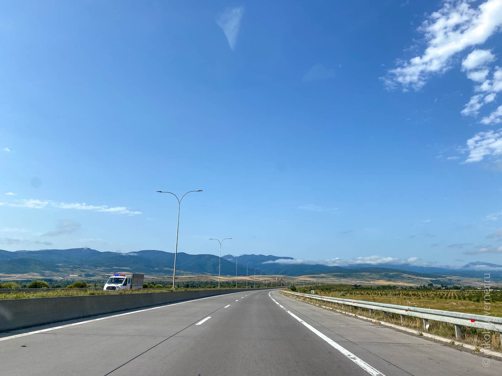 От Тбилиси мы поехали по прекрасной трассе Е60, которая ведёт на запад, к Батуми. В начале пути любовался видами на Картлийскую долину.