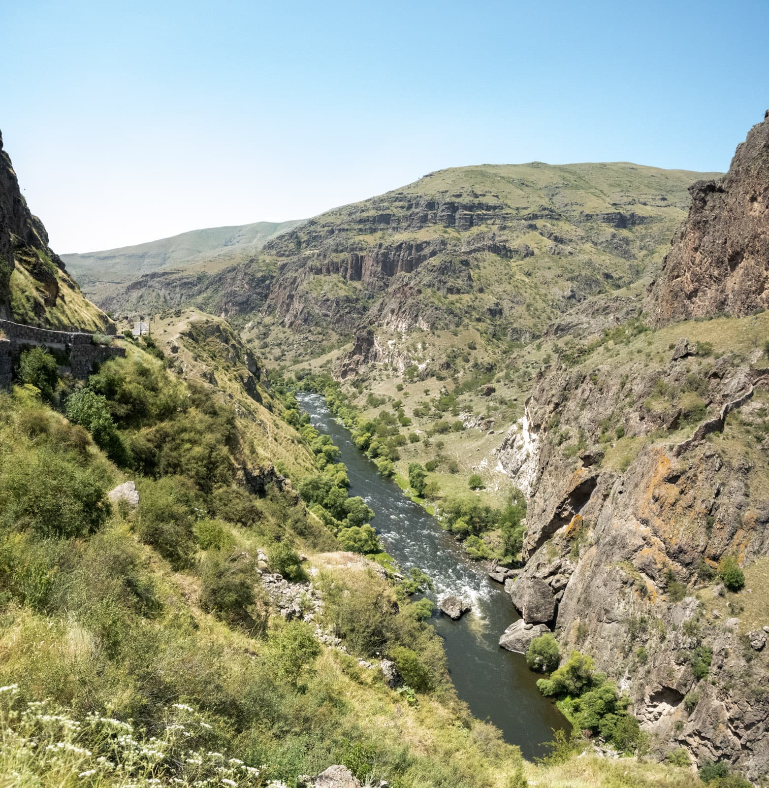 Интересная точка находится в пяти минутах езды перед Вардзией. Долина там сужается, отвесные скалы стискивают реку и на эту красоту можно посмотреть сверху, отойдя от машины на десяток метров.
