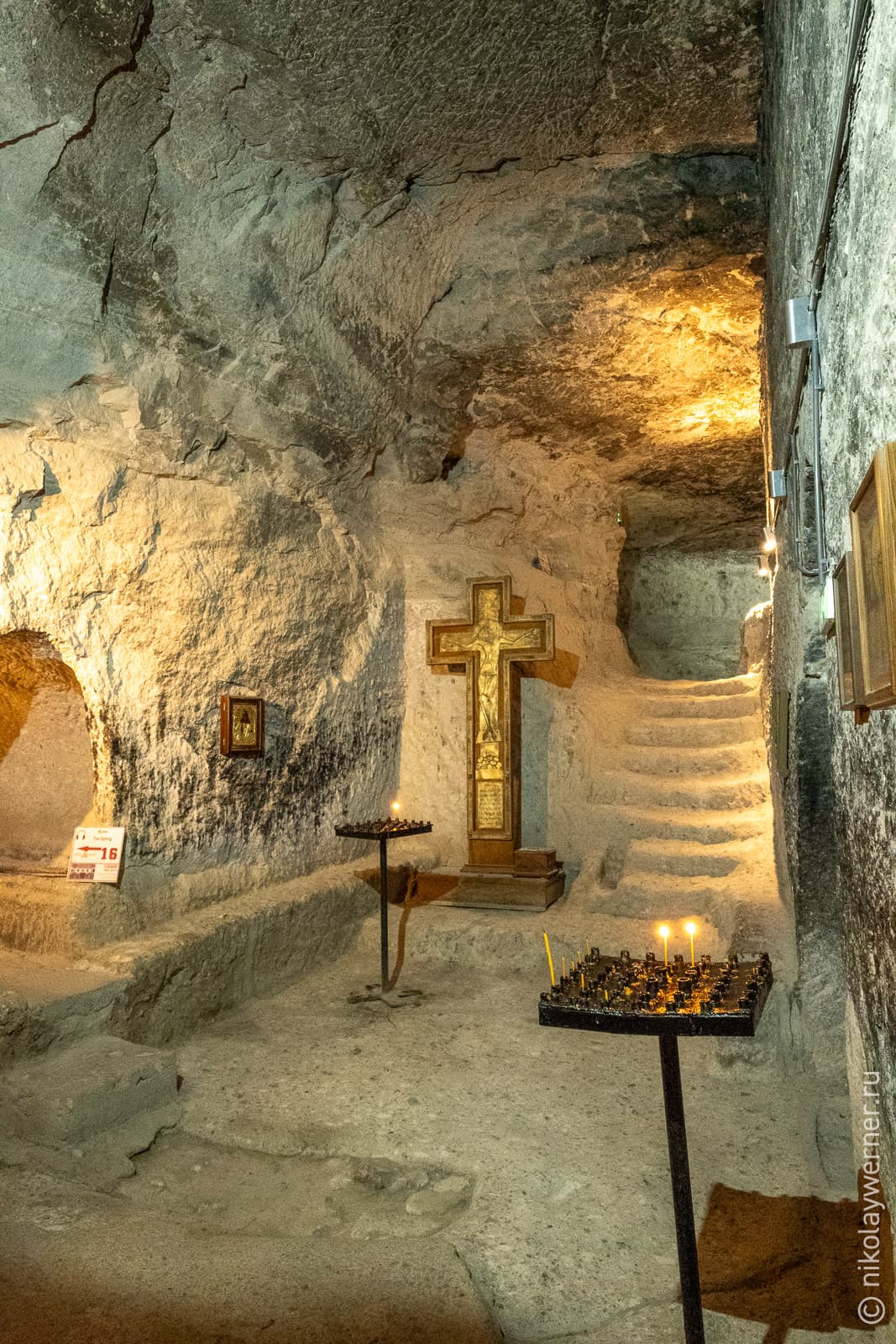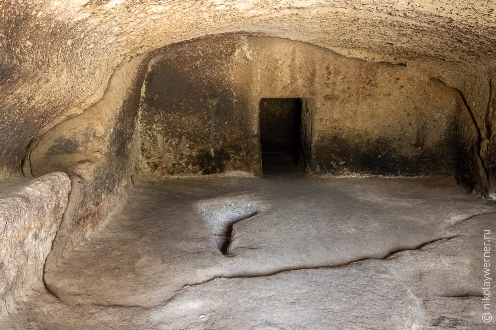 Когда-то давно в этих пещерах жили, трудились, молились люди. Без гида, не всегда можно понять для чего служили те или иные углубления и вырезы. Но здесь, мне кажется, ясно: длинный желоб, прорезающий стены и потолок скорее всего помогал пополнять запасы воды за счёт конденсата.