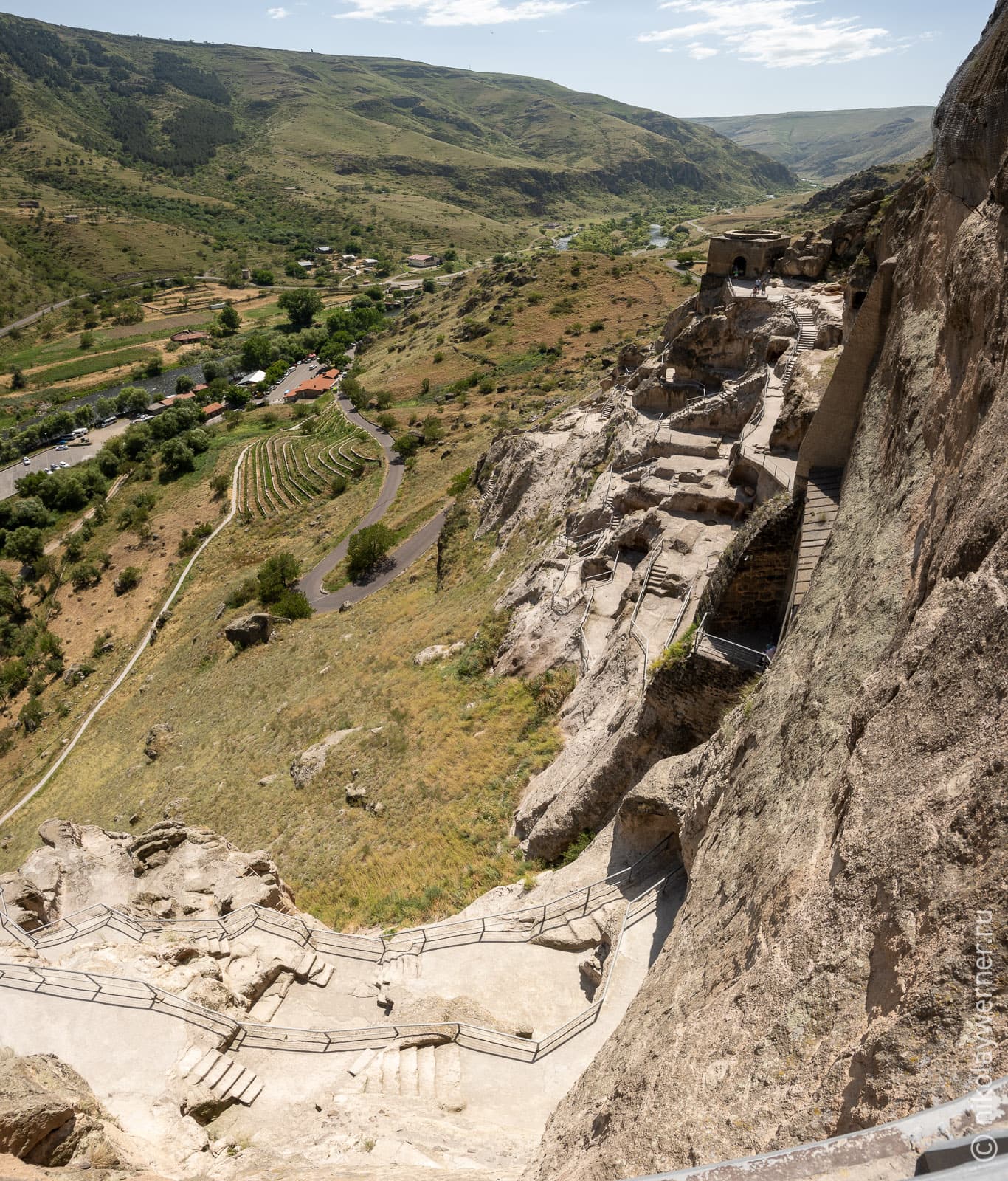 Вот так бродишь-бродишь в глубине скалы, а потом выходишь на свет, а там очередной шикарный вид на долину Куры и монастырские пещеры.
