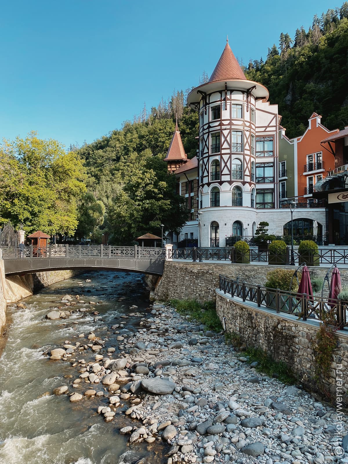 Вокруг какое-то невероятное количество старых домиков, находящихся в превосходной форме. Особенно впечатлил дом, в котором ныне разместился отель «Голден Тулип Боржоми». Само здание построил иранский консул в 1892 году, смешав в одной колбе традиции персидской, грузинской и европейской архитектуры.