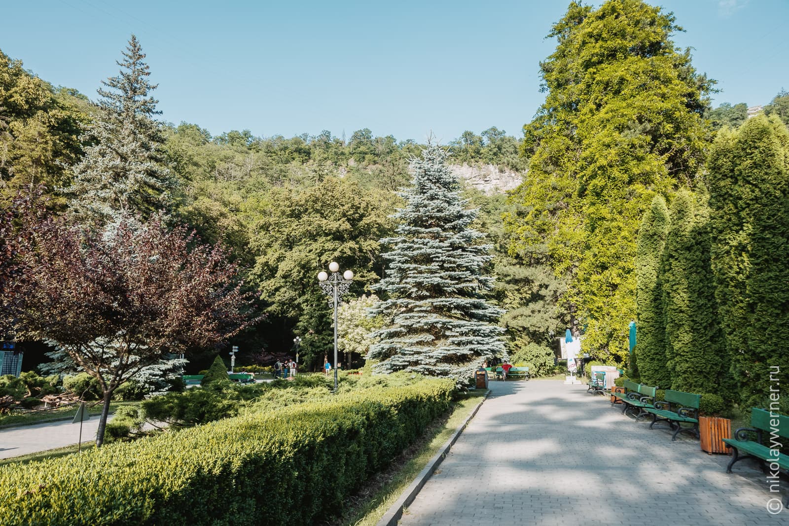 Сам парк протянулся вдоль реки Боржомулы примерно на километр. Можно было углубиться сильнее вверх по течению, плавно заменив парковую прогулку на лёгкий хайк, но времени на это не было и мы повернули назад к машине.