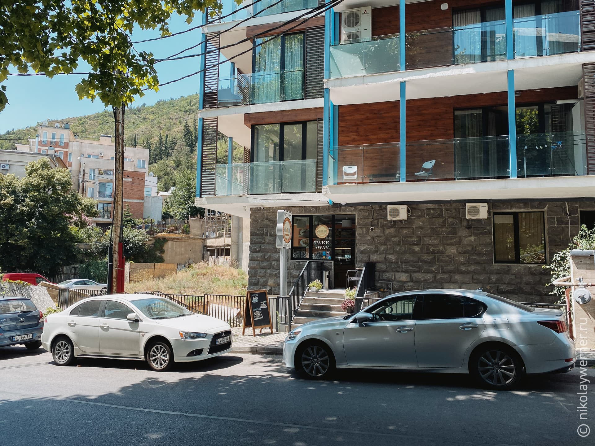 Ну, во-первых, если выселение по правилам в полдень, то выезжать надо в двенадцать и ни минутой раньше. Так что мы основательно выспались с утра, неторопливо собрались и вот этот кадр дома, в котором обитали три дня, я сделал ровно в 12:06.