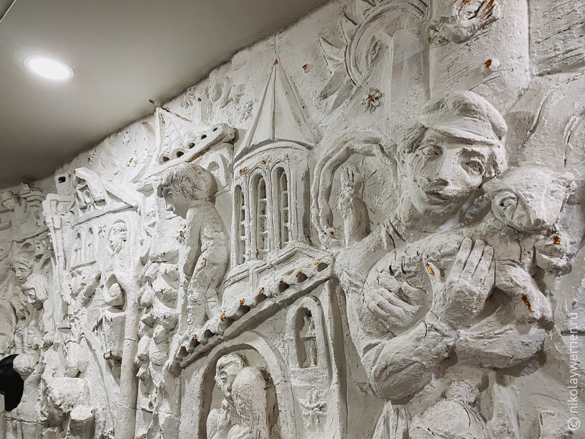 Вызвали такси, поехали обедать. По совету друзей отправился в столовую «Мапшалиа». Мне понравилось. Во-первых, для столовой довольно уютно. Чего стоят только вот эти барельефы на стенах.