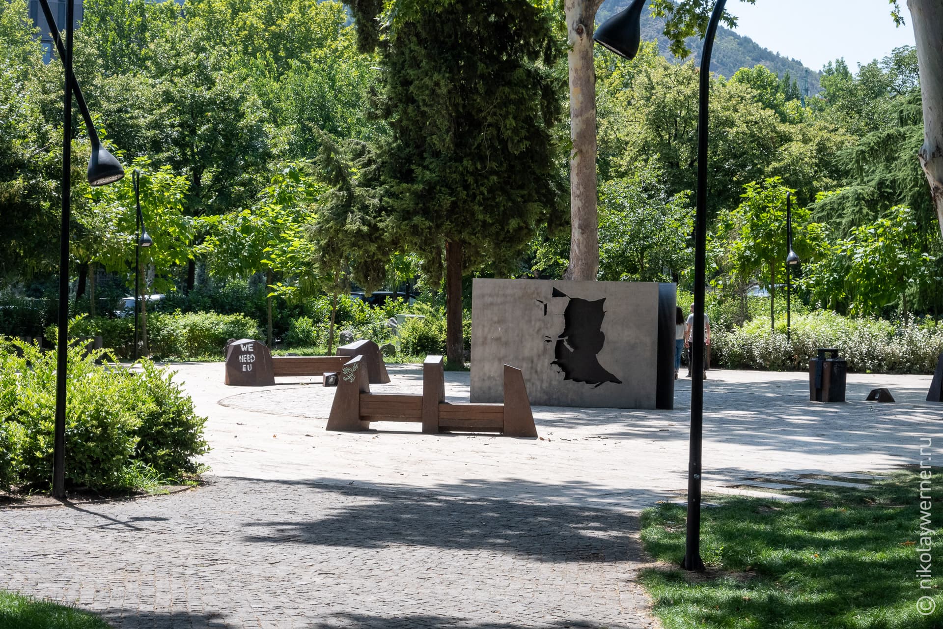 Блошиный рынок расположился вокруг парка 9 мая. Осмотрев его, мы отправились дальше, в соседний парк Деда Эна, что в переводе означает «Родной язык».